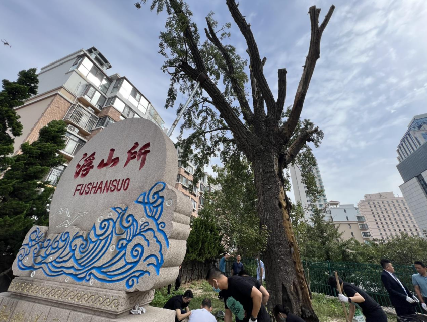 当天,青岛市互联网+全民义务植树志愿者、青岛浮山三阳置业有限公司中心假日酒店志愿者共同对本次认养的古树进行养护,清除周围杂草。该酒店还获颁“青岛市互联网+全民义务植树志愿者联盟”证书。今后,这棵高龄银杏树将由该酒店承担起养护任务,负责古树日常养护管理,包括水肥管理、病虫害防治、日常巡护等。
