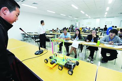 据了解,青岛市首届中小学创客大赛自2016年6月启动以来,采用了“线上+线下”的模式面向全市中小学生开展活动。第一阶段通过互联网线上报名的方式,面向全体学生征集作品,为扩大创客教育的覆盖面,不限定上报数量。截止到2016年8月31日,全市共上报作品1306份,涉及青岛11个区市的中小学校及市教育局20个局属学校。经过对各学校上报作品的选拔,共有637份创客作品入围线下决赛资格。“很多作品是由2到3个学生共同完成的,所以今天参加线下比拼的学生超过了1000名。”周杰介绍说,此届比赛形式内容的设计,希望让学生通过创客项目的创意设计、实践操作、分享成果的完整过程,实现培养他们想象力、创造力和动手解决问题能力的效果。