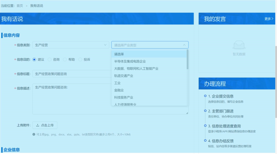 六是“我有话说”。对企业的个性化诉求和建议,设立“我有话说”,“一站式”解决企业问题、回应企业诉求。