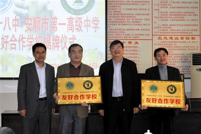 一是市级合作引领带动。2013年7月,安顺市教育局与青岛市教育局签订友好合作协议,启动市级校际合作。青岛二中与安顺市二中挂牌成立合作共建学校,青岛与安顺11所市级幼儿园建立“手拉手”对口帮扶关系,安顺1中、民中、实验学校、民职、城市服务学校分别与青岛58中、17中、37中、青岛幼师、青岛海洋技师学校建立了“手拉手”帮扶关系。