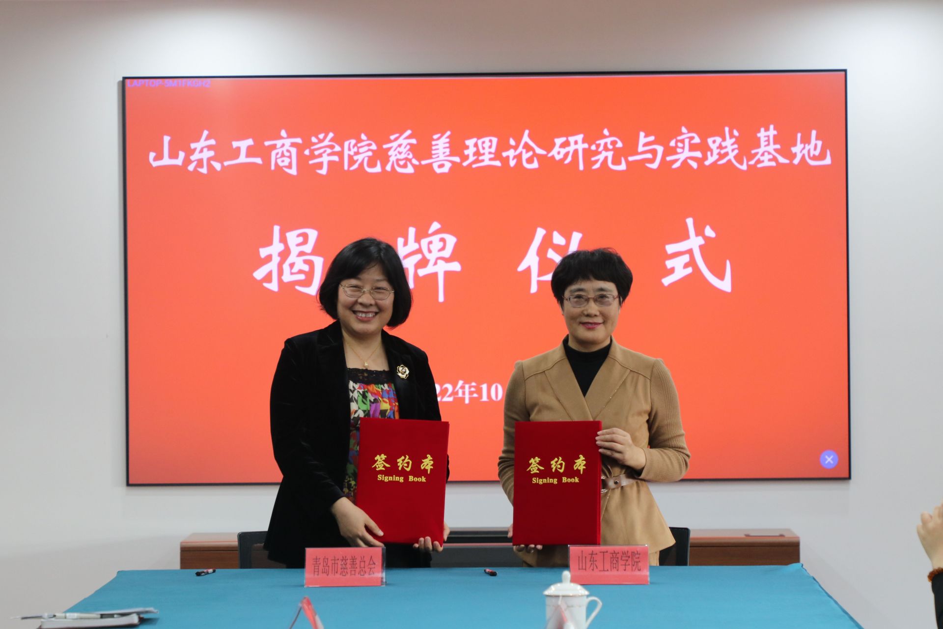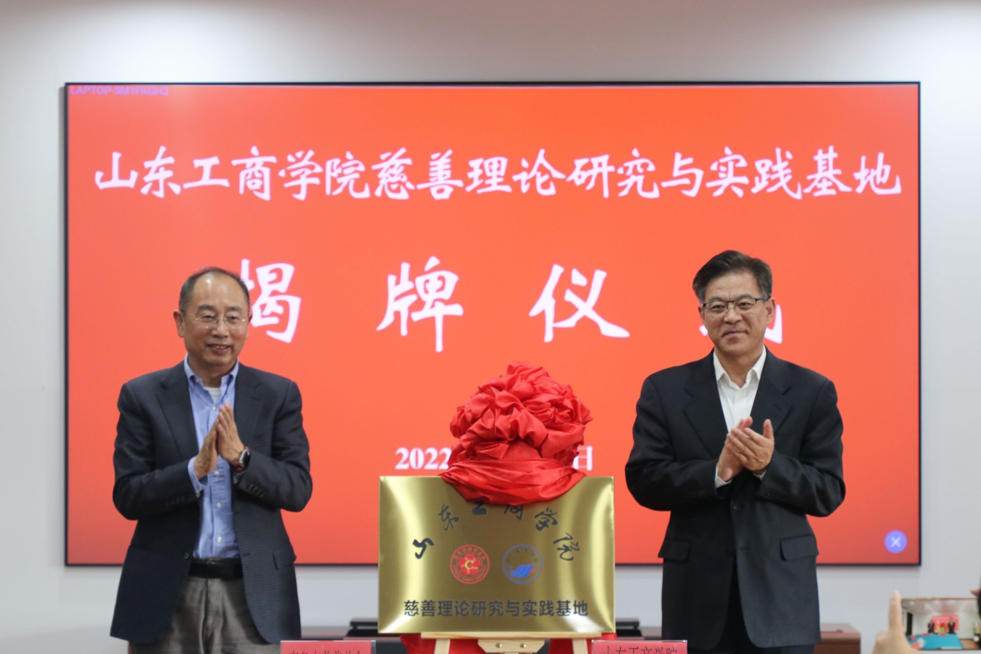 10月23日,山东工商学院、青岛市慈善总会举行了山东工商学院慈善理论研究与实践基地揭牌仪式。仪式上,山东工商学院校长杨同毅和青岛市慈善总会副会长郄晋生共同为山东工商学院慈善理论研究与实践基地揭牌,山东工商学院公共管理学院(公益慈善学院)院长于秀琴和青岛市慈善总会副秘书长盛梅签署了合作协议。