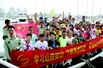 “哇,这艘军舰真大啊。可以搭载飞机吗?”“老师,这艘军舰服役了多长时间?”孩子们很兴奋,一边听着讲解,一边迫不及待地抛出心中的疑问。对于舰上的武器装备,孩子们更是表现出了极大的兴趣。