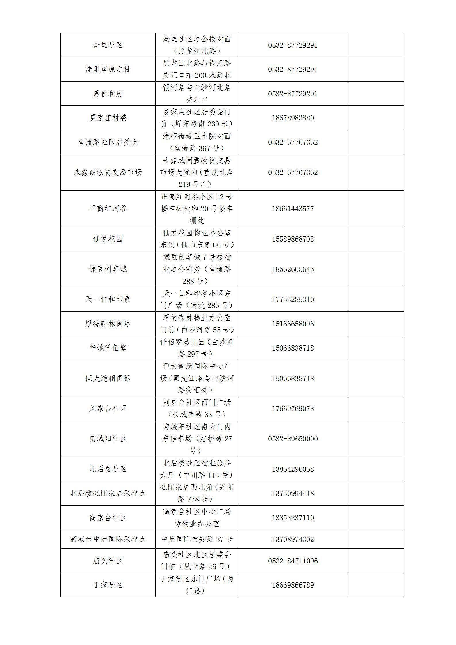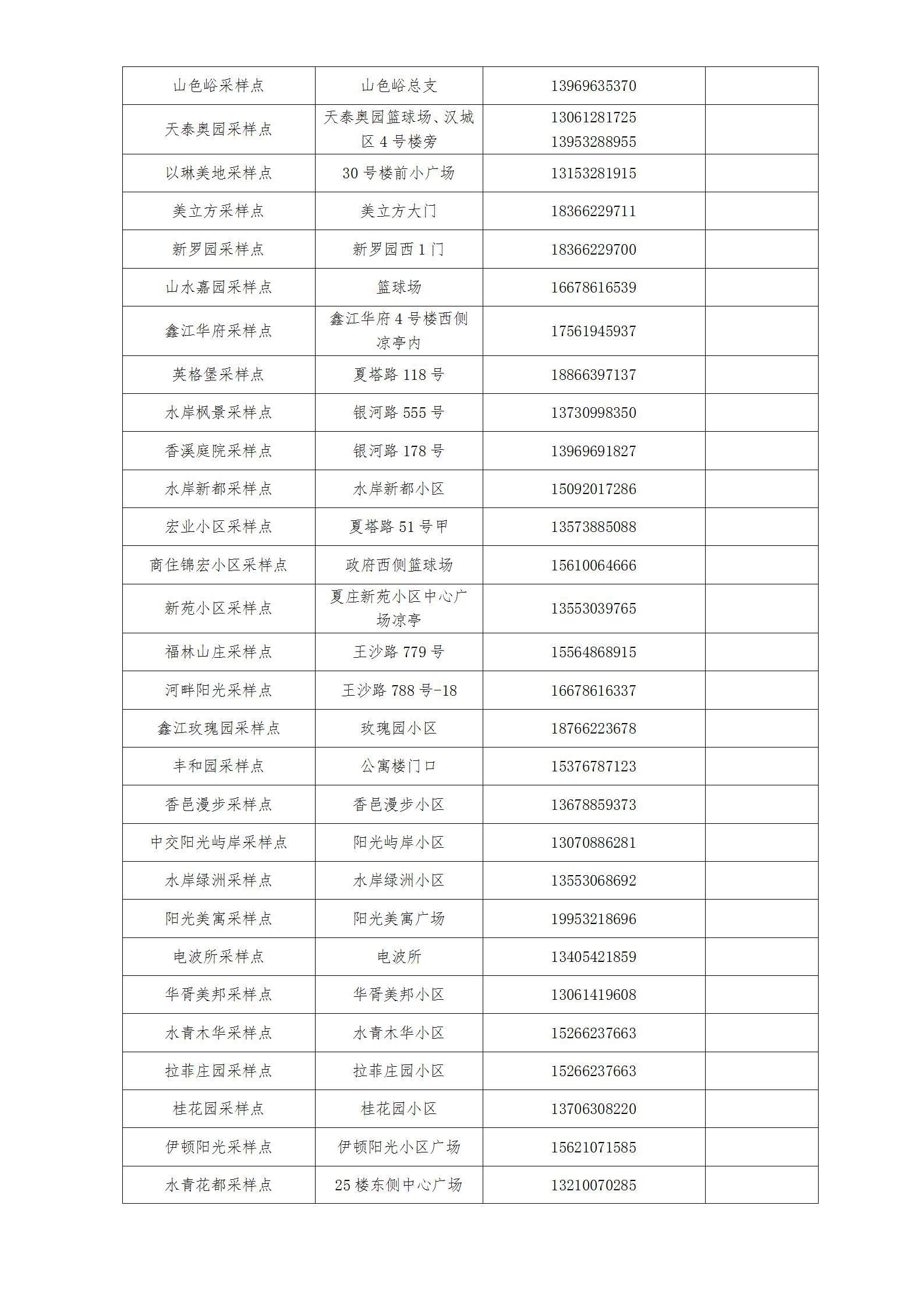 各街道、高新区防指办、高新便民服务中心就近设置采样点(采样点信息附后),请关注区及各街道、高新区防指办、高新便民服务中心发布的信息。