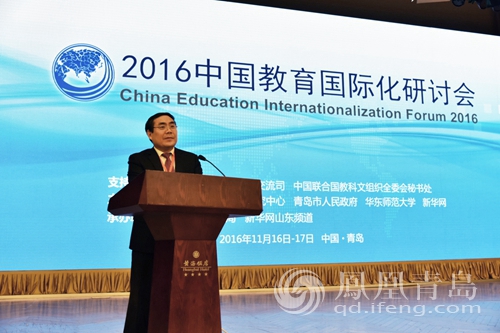 2016年11月16日上午,2016年中国教育国际化研讨会在青岛黄海饭店隆重开幕。中国教育国际交流协会会长、教育部原副部长刘利民,教育部教育发展研究中心主任、国家教育咨询委员会秘书长张力,中国联合国教科文组织全国委员会副秘书长周家贵,青岛市委常委、副市长王广正,青岛市教育局局长邓云锋等领导出席开幕式。