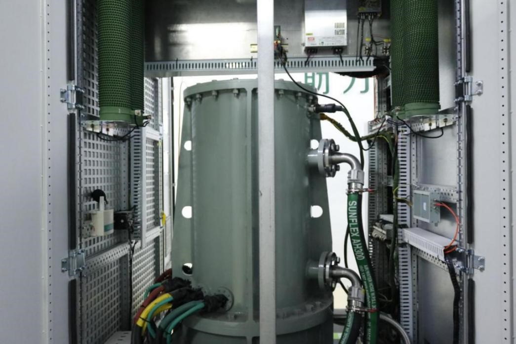 飞轮储能属于物理储能,采用磁悬浮技术,飞轮转子在真空室内无风阻环境下运行。飞轮储能装置安装于轨道交通牵引变电所内,当列车进站制动时,飞轮吸收能量,将电能转换为动能,转速高达每分钟20000转;当列车出站加速时,飞轮释放能量,将动能转化为电能,释放能量供列车使用,具有极佳的节能和稳压效果。