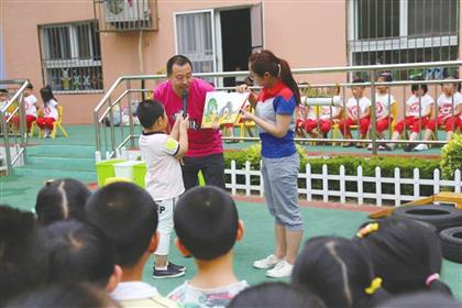 李沧区实验幼儿园邀请家长入园讲绘本故事。