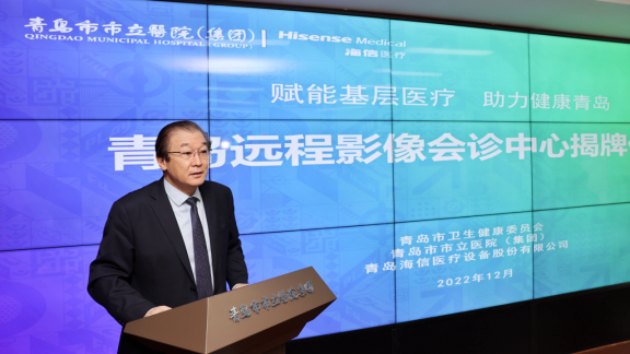 管军总院长在致辞中表示,青岛市市立医院与海信医疗设备公司基于“助力基层医疗机构卫生服务能力和分级诊疗能力提升”的共同目标,打造“青岛远程影像会诊中心”,标志着“医工结合”在青岛的又一应用场景落地,医院远程诊疗工作开启新的模式,医院将进一步发挥好三级公立医院的示范引领和辐射带动作用,不但“授之与鱼”,解决好基层医疗机构在超声诊断方面遇到的困惑和难题,更要“授之与渔”,通过现场指导、远程教学等方式,将先进的超声诊断理论、技术不断向基层医疗机构普及、推广,逐渐提升基层综合诊疗能力,满足广大群众“家门口”的优质就医需求。