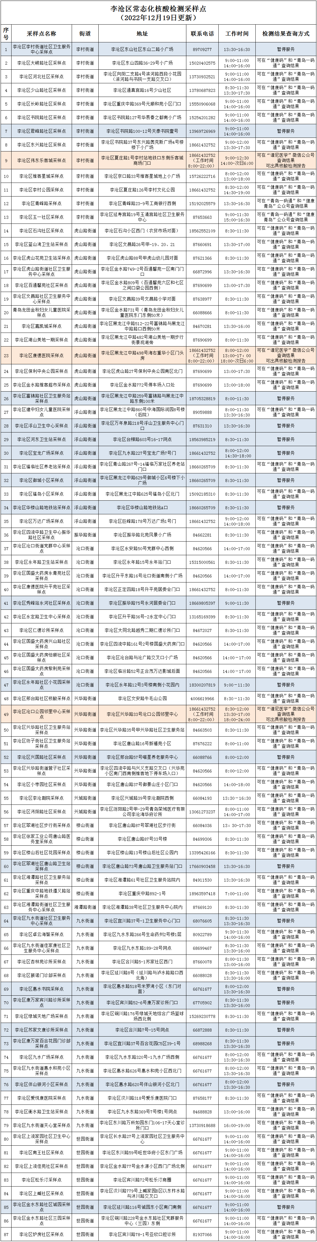 12月20日李沧区常态化核酸检测采样点(后续调整请随时关注)