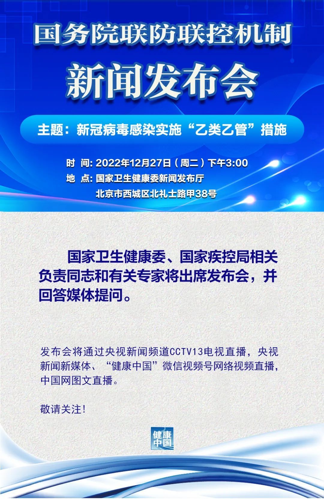 今天下午3点,国务院联防联控发布会介绍新冠病毒“乙类乙管”措施