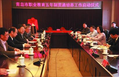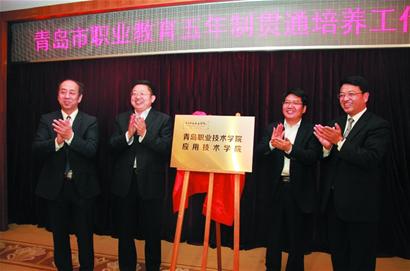 青岛职院与青岛市教育局签订《五年制高职贯通培养试点项目合作框架协议书》,联合成立青岛市五年制贯通培养试点项目工作领导小组,全面加强对试点项目工作的领导。青岛职院与各试点专业所在区市教体局及中职学校共同组建“试点项目”理事会,推进中高职专业建设项目的建设与运转,支持试点项目内学校共享教学资源。此外,经青岛职院党委研究,成立应用技术学院,分别在合作开展试点项目的中职学校加挂“青岛职业技术学院应用技术学院”牌子,统筹试点专业人才培养各个环节工作。
