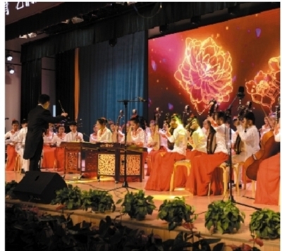 学校艺韵少年民族乐团进行艺术展演。