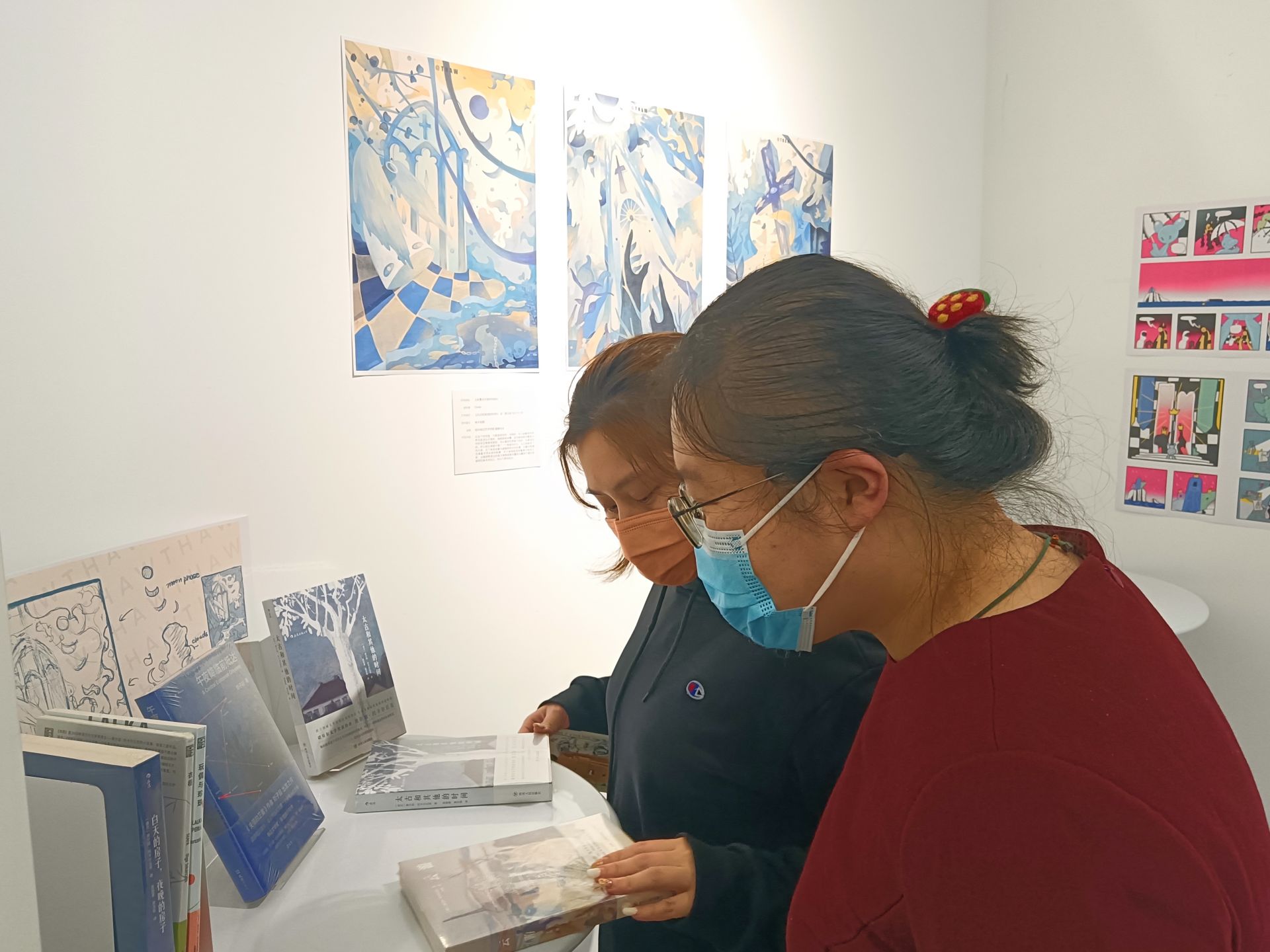 在书店里,一幅幅充满创意的插画与图书进行了联动展示,在业内这也是一次新尝试。“参观者在看到作品的同时,也会翻阅文学作品,深度了解插画师的创作源泉,让人们可以静下心来、放慢脚步细细欣赏每一幅插画作品,可以说是一种特别的观展体验。”本次展览主办方、不是书店的负责人张兵林表示。