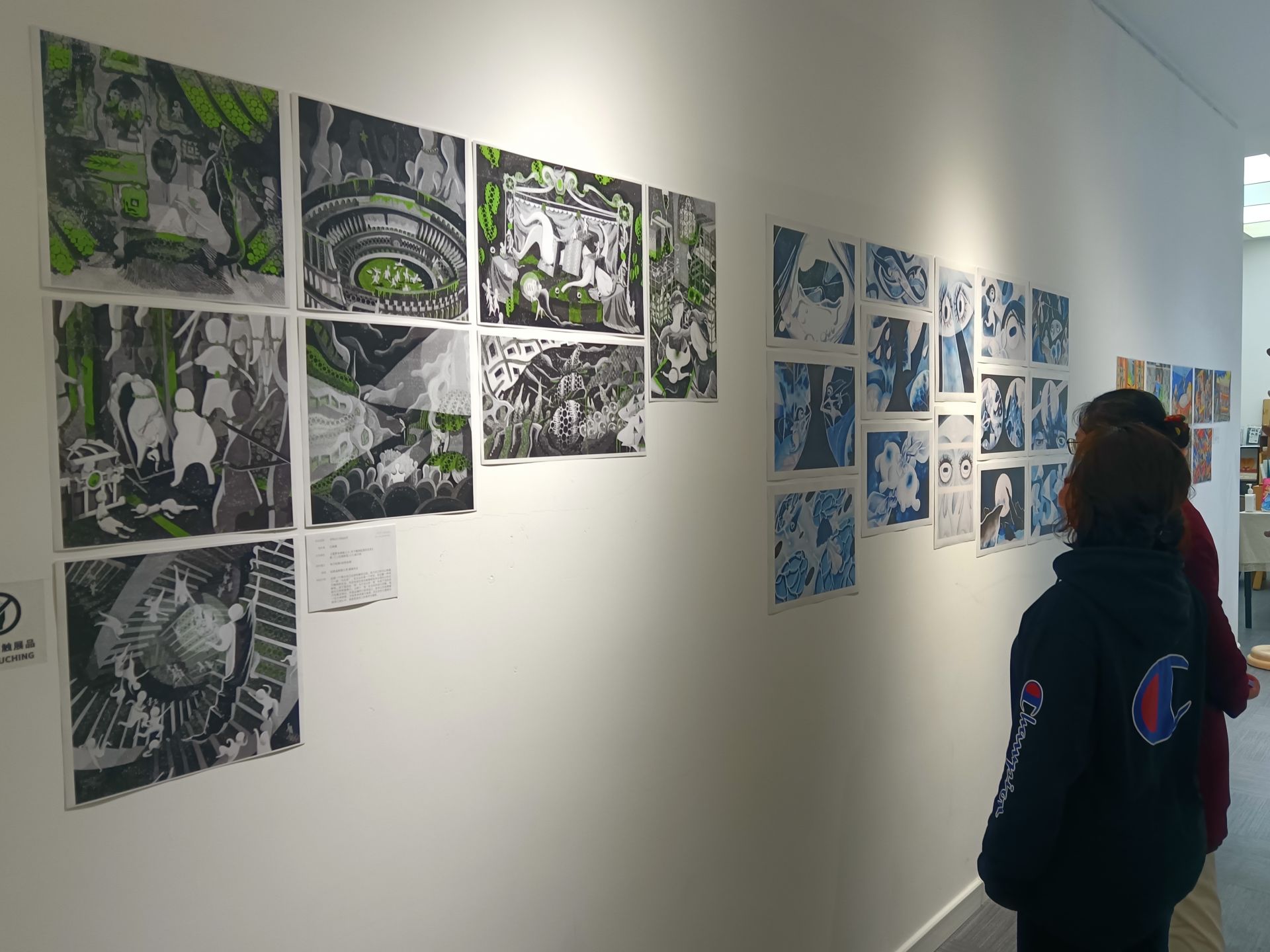 本次展出的插画作品类型多样,有电子绘画、水彩、彩铅、速写、油画棒等,插画师们用不同的方式展现她们的想象力和无限能量。来自伦敦金斯顿大学的王姝璇为本次展览准备了三十余幅作品,涉猎到十几本图书,用不同的创作手法展现科幻、环保、历史等题材,展示了阅读带给她的无穷想象力。
