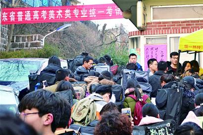 “没想到过来考试的人会有这么多,这个考点一共设了39个考场,按照一个考场30个人算也有一千多人了,而这仅仅是参加这个学校美术专业考试的学生,看来竞争压力不小。”单枪匹马来青参加考试的菏泽考生张浩说。