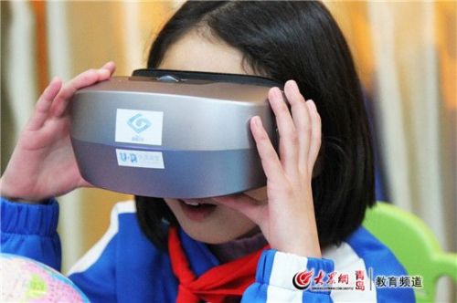 据青岛智海云天的工程师介绍,学生体验的“VR未来课堂”是一个完整的VR沉侵式课堂体系,由VR硬件(智能眼镜)、VR课件(VR云课件)、VR系统软件(VR教学操控系统)组成,是互联网前沿科技在中小学课堂上真正应用,极大改变传统教学模式,激发了学生知识学习和创新潜能。