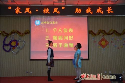 中国向来是“礼仪之邦”。一个人的举止,代表他的修养和文明程度。我们学校更是注重这方面的教育。青岛国开中学的孙涵熙、吕泽筱和纪春妍等同学从个人仪表,鞠躬问好,双手递物等方面进行了示范,使同学们明确了自己如何规范举止。不仅学礼仪,国开学子还利用寒假时间,积极参加了各门各类的实践活动。