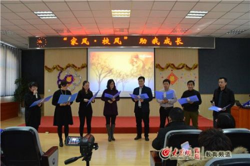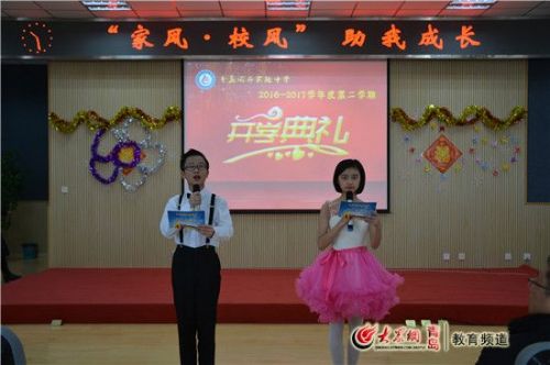 大众网青岛2月13日讯 (记者 曲顺)家长是孩子的第一位导师,如何处理与孩子的关系?学校是学生离开家庭踏入的第一个“小社会”,如何教会学生做人和处事?……2月12日,青岛国开实验中学论道中心三楼,如火如荼地进行着一场别开生面的开学典礼。据了解,青岛国开实验中学的老师和学子们,摒弃了传统的校长发言、教师代表发言、学生代表发言等俗套的做法,而是突出了“家风,校风,自我成长” 的主题,达到了润物细无声的“有心而无痕”的美妙境界。