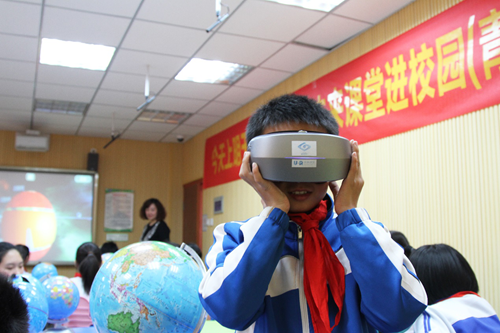 课堂上,学生在老师的指挥下头戴VR眼镜,有序地虚拟飞向太阳系中的特定星体,身临其境地观察太阳和每一个行星,学生在无形中掌握了所要领悟的教学知识。“我感觉自己就在宇宙中,和各大星系亲密接触的感觉太奇妙了!”学生惊叹道。
