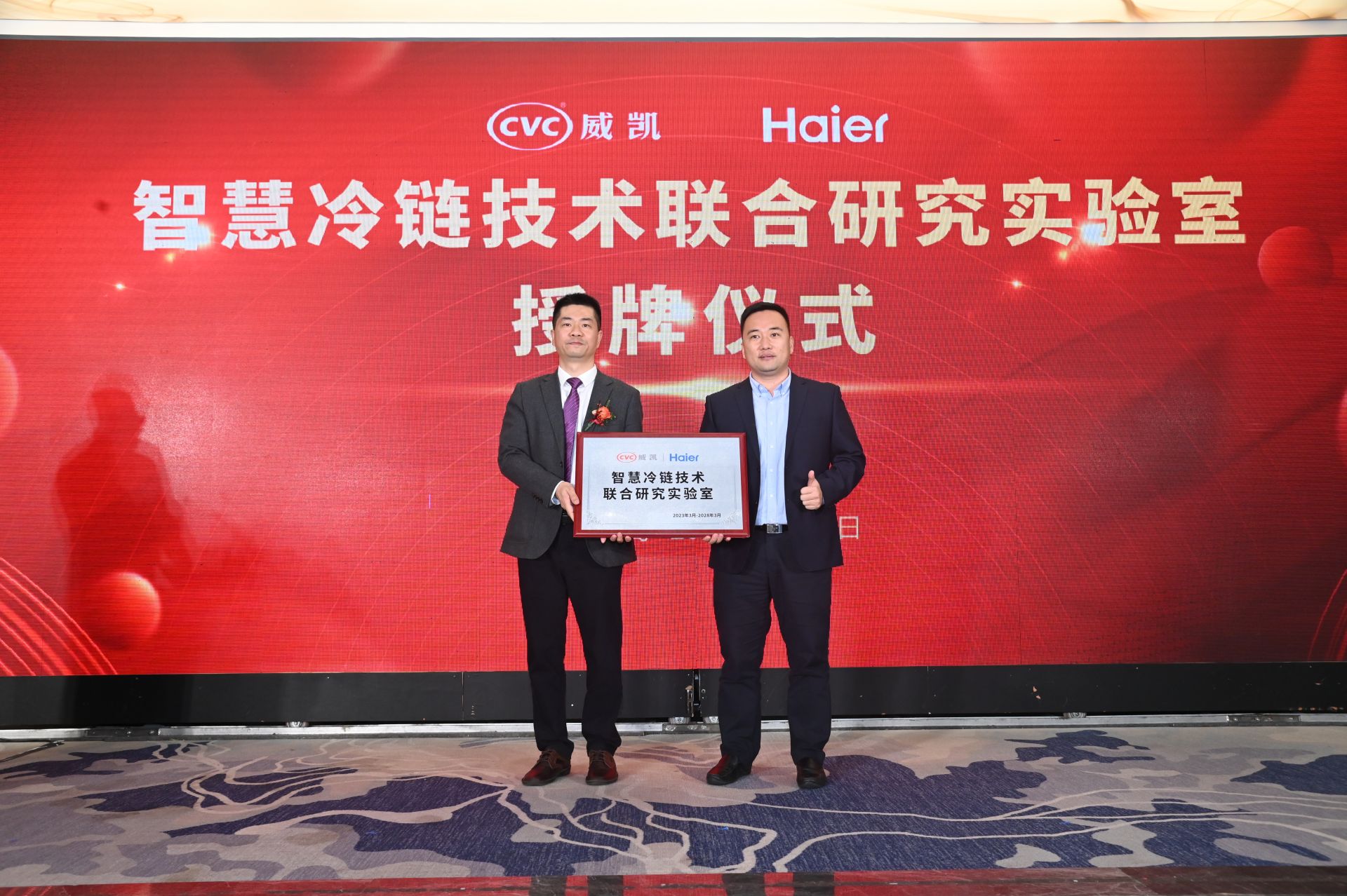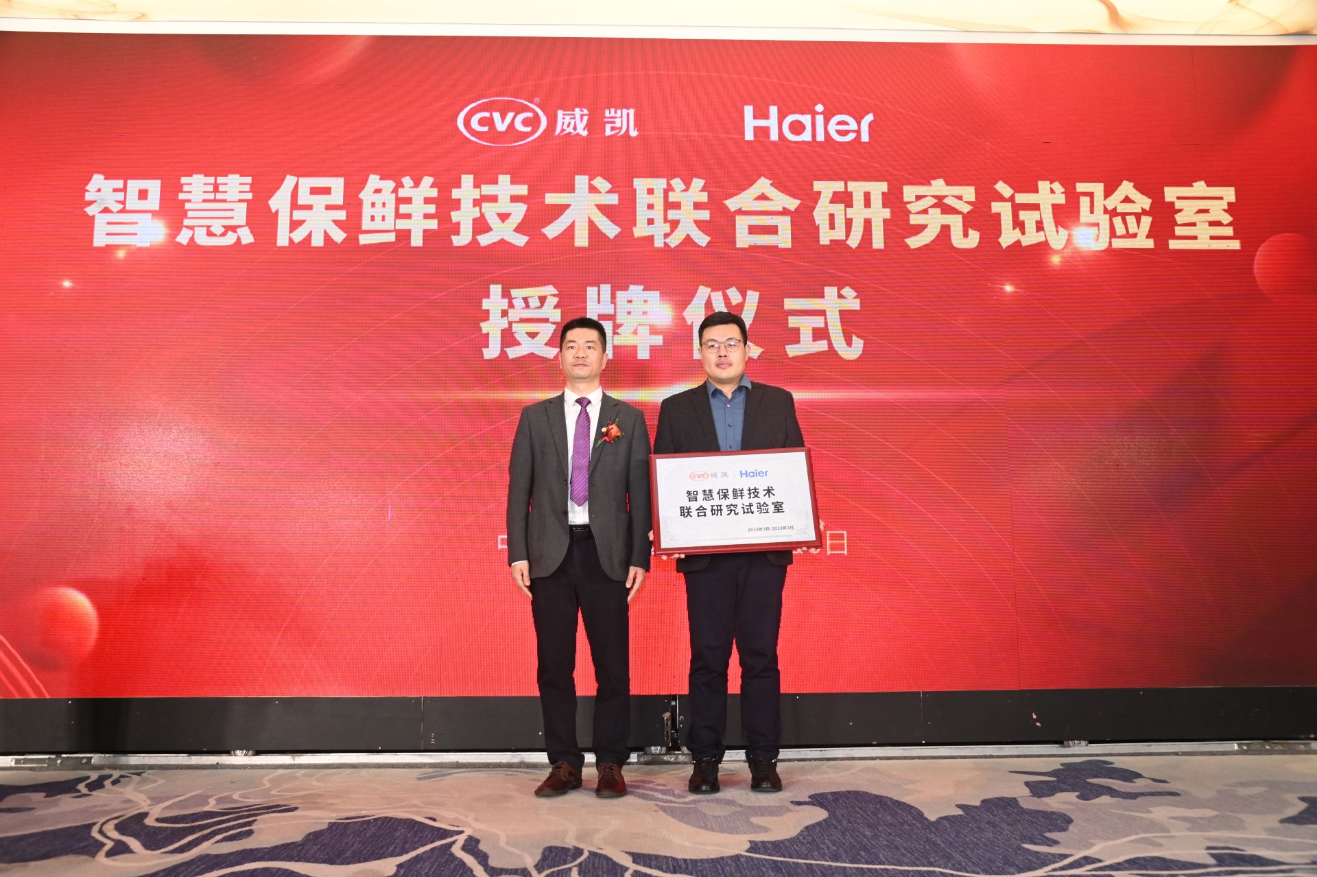 基于威凯在家用电器、消费电子、新能源汽车、轨道交通、医疗器械等领域成套质量服务体系及一站式的服务能力,会上,威凯青岛公司携手青岛海尔电冰箱有限公司、青岛海尔特种电冰柜有限公司、海信冰箱有限公司、青岛海容商用冷链股份有限公司,对智慧保鲜技术联合研究试验室、智慧冷链技术联合研究实验室、智能控温技术联合研究试验室、智能零售技术联合研究实验室授牌。