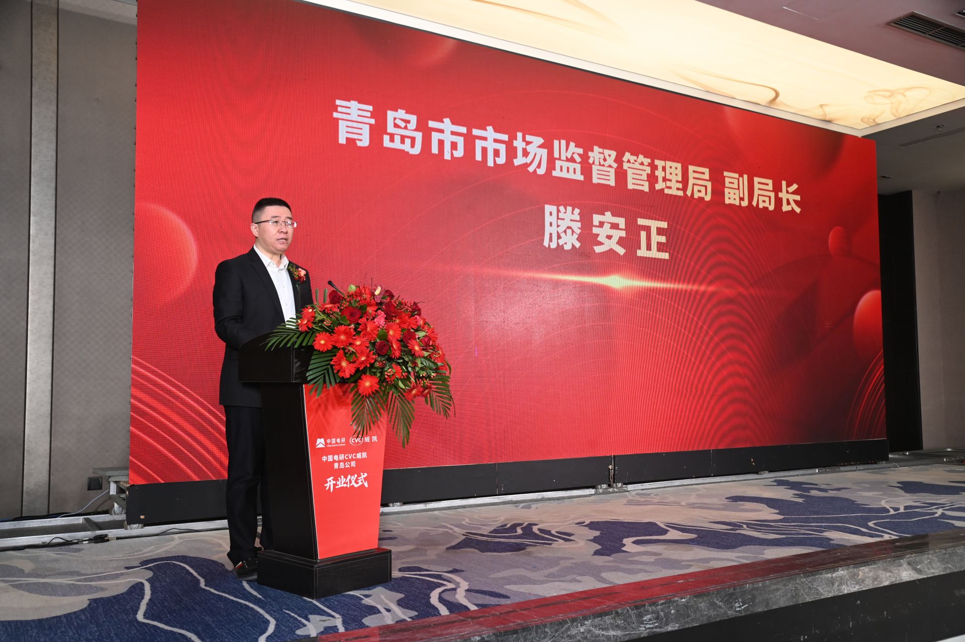 青岛市市场监督管理局副局长滕安正发表致辞,他指出:“CVC威凯的入驻,有助于推动行业市场化、国际化、专业化、集约化、规范化发展,帮扶岛城企业聚力攻坚人工智能、5G、物联网等技术瓶颈,也将为青岛制造业增添新的科技势能。”