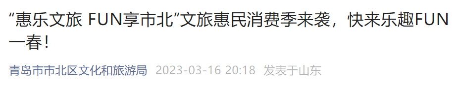 此外,记者从“青岛市市北区文化和旅游局”微信公众号获悉,“惠乐文旅 FUN享市北”文旅惠民消费季活动正在进行中!观影、买书消费券,海量酒店、门票优惠齐登场!