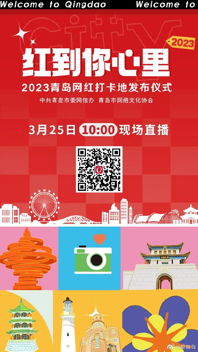 2023青岛网红打卡地征集评选活动由中共青岛市委网信办、青岛市网络文化协会主办,最终评选出100个青岛网红打卡地,推荐给广大市民和游客朋友。