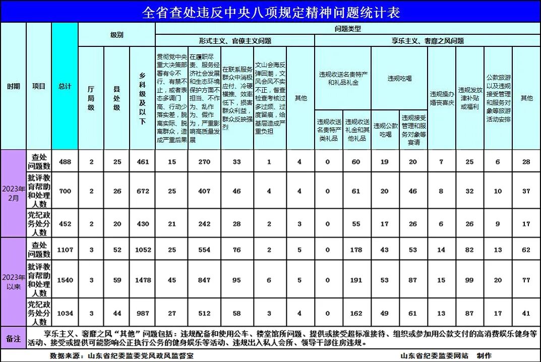 2023年2月全省查处违反中央八项规定精神问题488起
