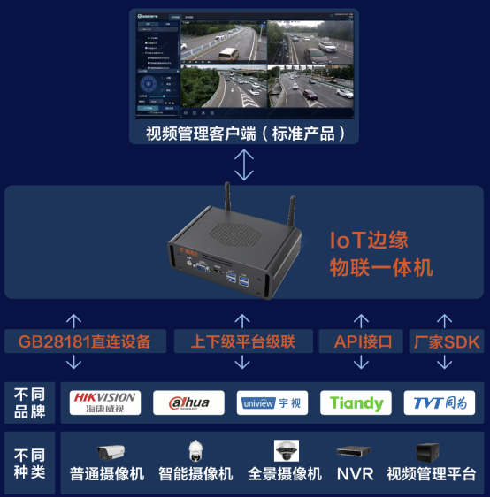多种类物联、多品牌兼容、转码能力、边缘计算,可单机接入物联设备10000+,超高清视频监控1000路+,并行转发500路+;