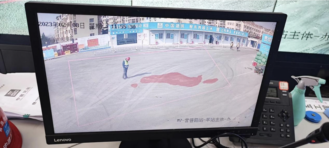 当AI识别到路面上有泥污、杂物或散落的渣土时,会自动报警并通过平台推送到工点调度中心,再通过现场音柱进行广播,提醒管理人员和作业人员及时清理。AI就像一个永远不下班的“卫生委员”,紧盯“门前三包”,以信息化手段助推文明施工精细化管理。
