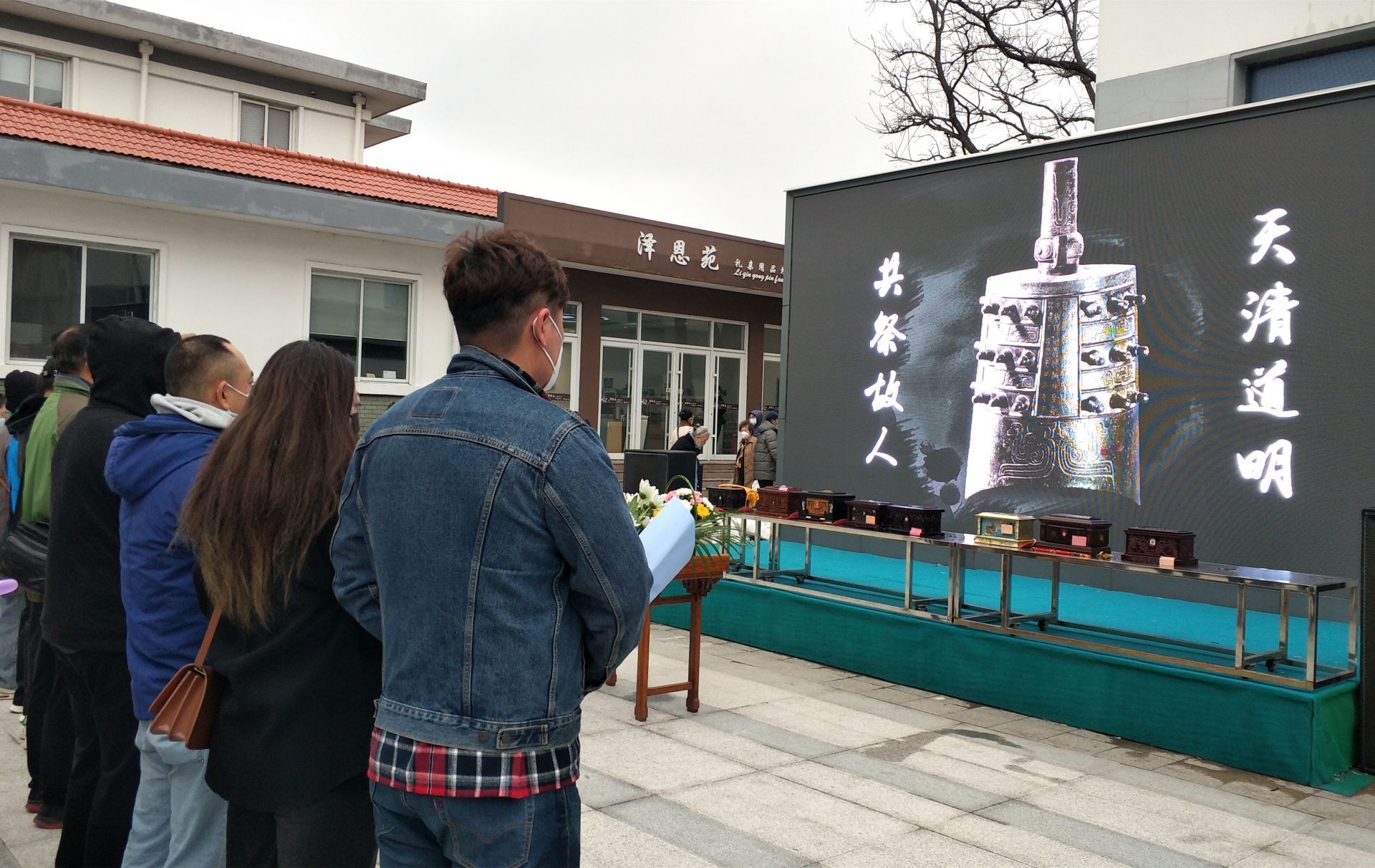 在集体共祭区,市民先后排队登记,工作人员分批次安排市民开展集体共祭仪式,仪式按照鸣响钟声、恭读祭文、敬献鲜花、签字留念等形式进行,以告慰逝者,传递生命敬意。