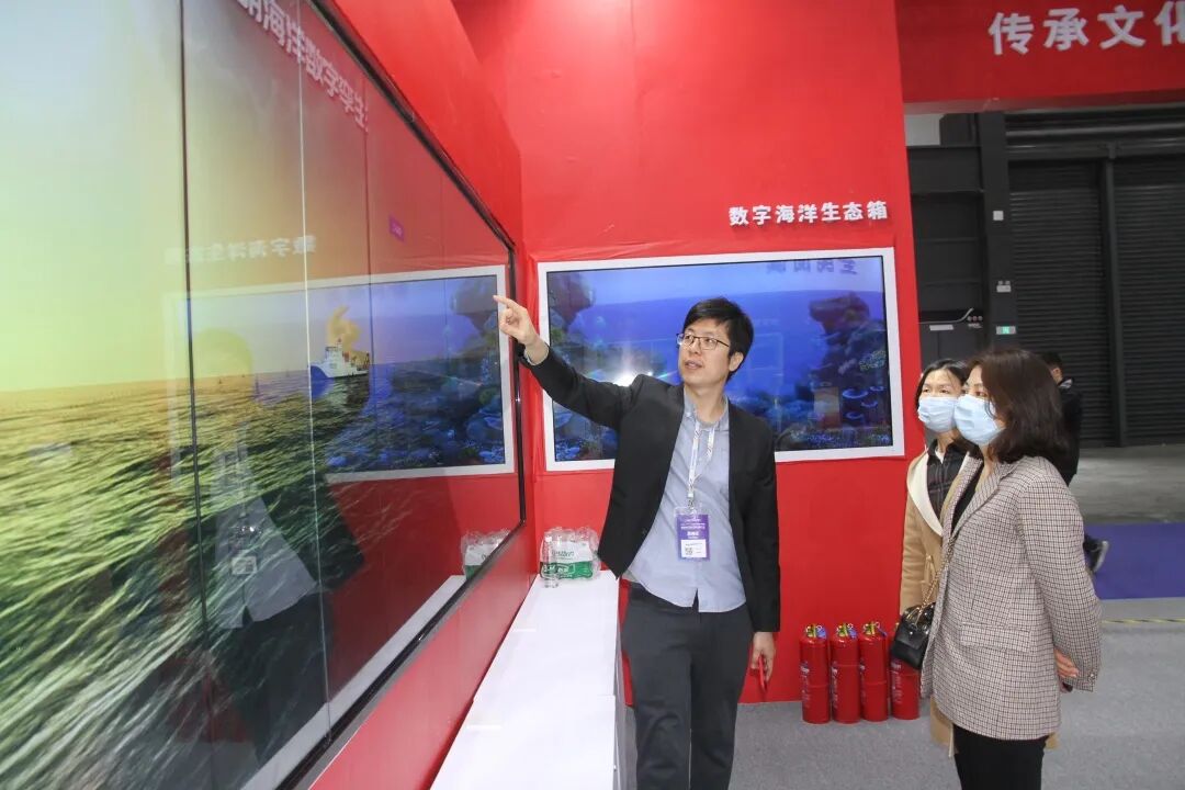 关心海洋、认识海洋、经略海洋,“全环境数字文化空间”内,“数字海洋生态箱”仿佛真实的透明鱼缸,而观众通过屏幕触控,可以与各种海洋生物“亲密接触”;在“透明海洋数字孪生”体验系统前,记者看到很多观众争先体验,“通过屏幕触控互动、数据可视化、三维虚拟仿真,可以了解到我国越来越先进的海洋科考科研水平;通过近地卫星、漂浮和深潜装备观测和感知海洋,这种数字化体验很穿越!”参观者惊叹道。