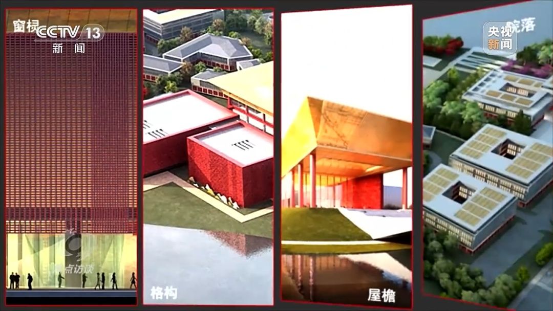 虽然占地并不规则,但在形制上,设计灵感来自对中国传统殿、堂、社、院的理解,有中轴线,也有与故宫一样的天际线。红墙、黄瓦、窗棂、阁构、屋檐、院落,处处渗透了故宫传统元素的现代表达,同样气势恢宏。