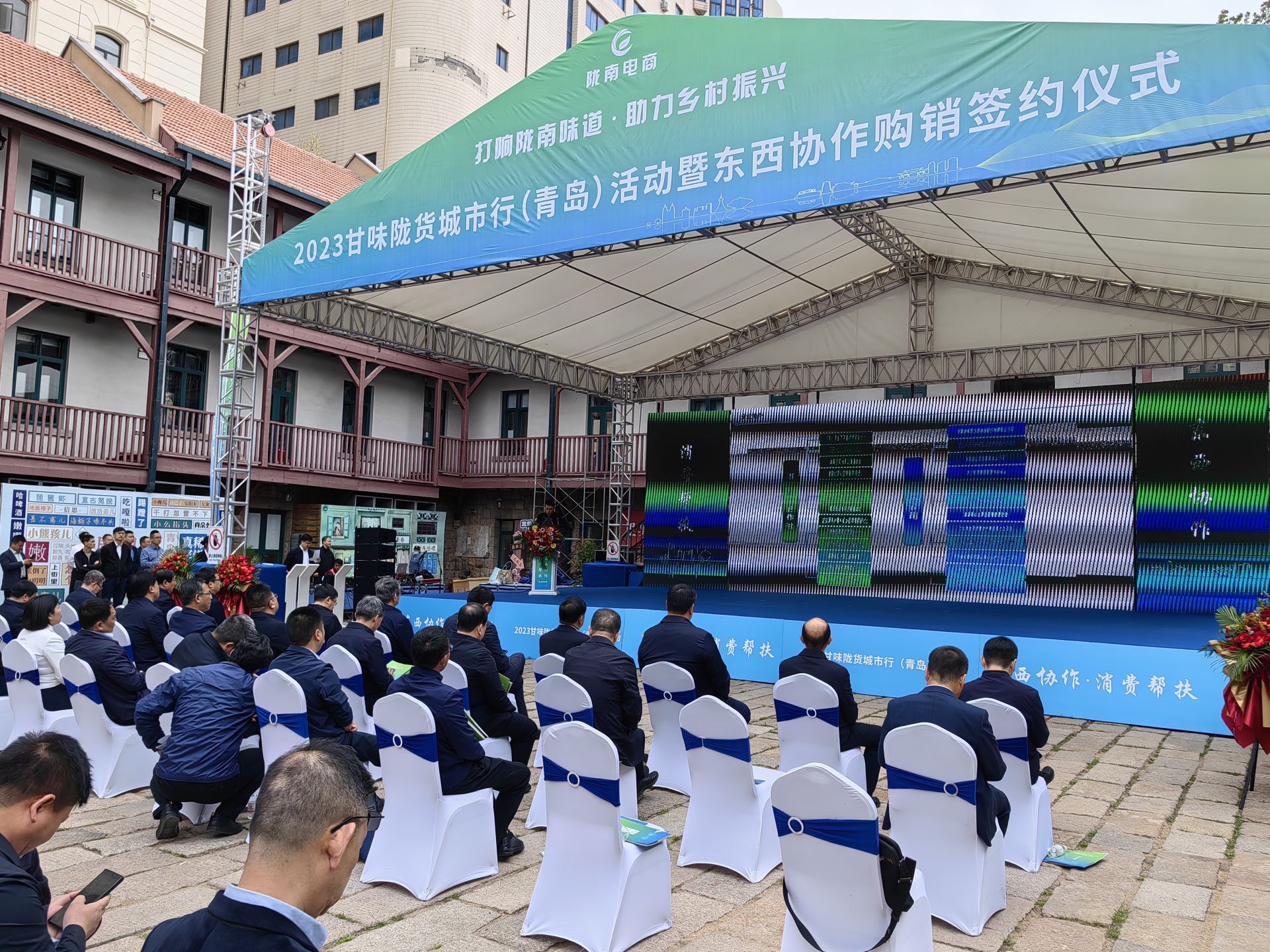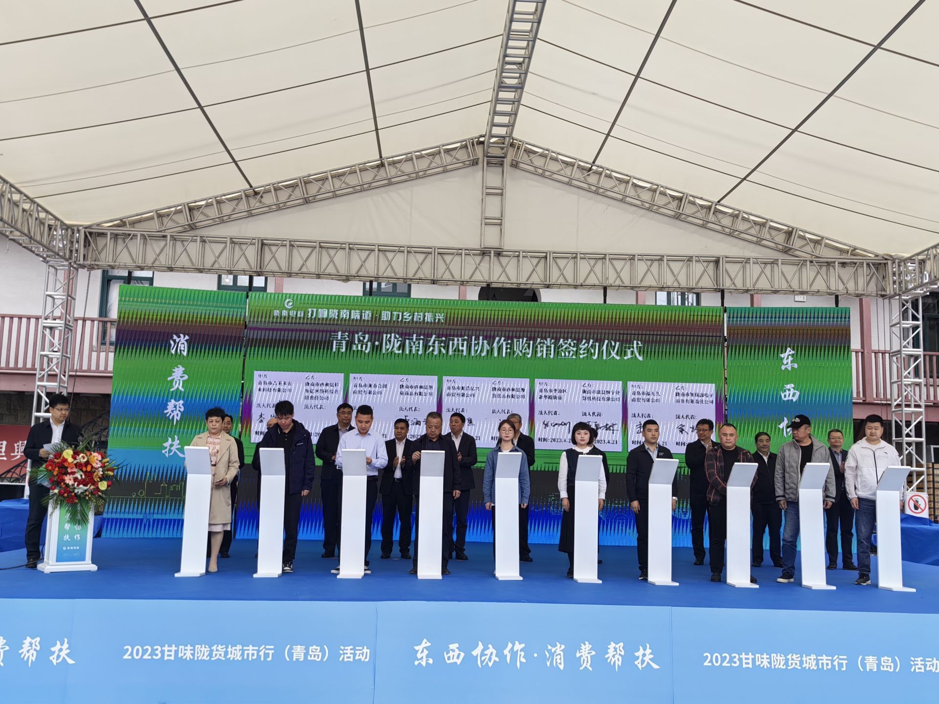 4月21日上午,以“打响陇南味道、助力乡村振兴”为主题的2023甘味陇货城市行首站活动暨东西协作购销签约在市北区大鲍岛文化休闲街区举办,40家青陇两地企业现场签约购销陇南农产品金额2.18亿元。本次活动为期三天,陇南市优选组织30余家农特产品企业在青岛市北区大鲍岛文化休闲街区布展,同时在市南、胶州、即墨、崂山等市区设9个分会场,同步开展线上线下促销活动。