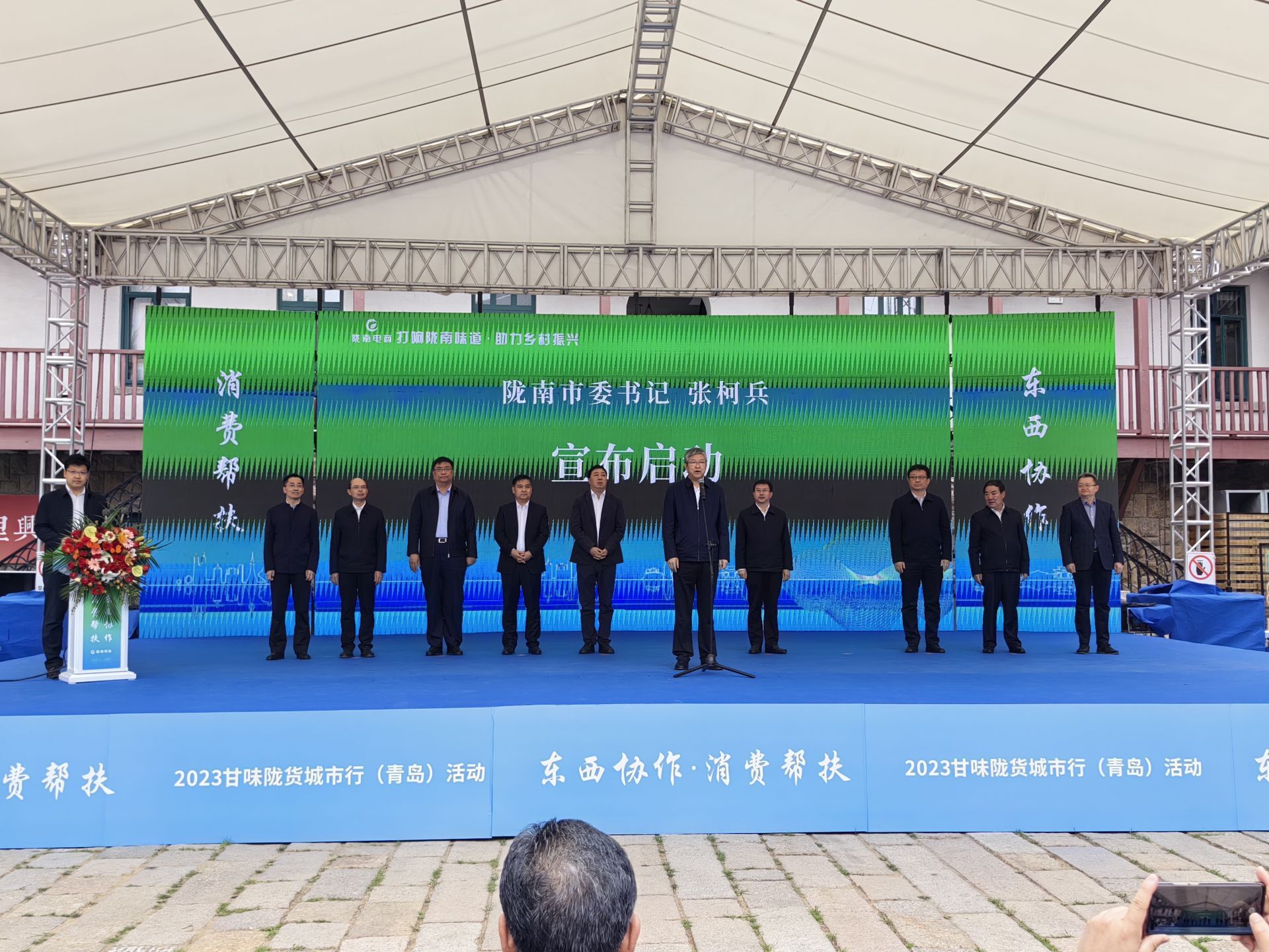 陇南市委书记张柯兵宣布活动启动,青岛市委常委、秘书长常红军致辞。青岛市委常委、秘书长常红军表示,这次甘味陇货城市行(青岛)活动,是坚持和丰富东西部协作机制的具体实践,也是东西部协作助力消费帮扶、助推产业振兴的有力举措,把陇南最好的绿色农产品宣传推介给青岛市消费者,让消费者零距离体验、感受“麻辣香甜浓,甘鲜醇脆美”的陇南味道,持续推动“甘味陇货”品牌建设提质增效。同时助力两地企业建立长期的产销对接关系,通过消费协作推动陇南产业发展,拓展青岛消费市场,实现青陇合作双赢。