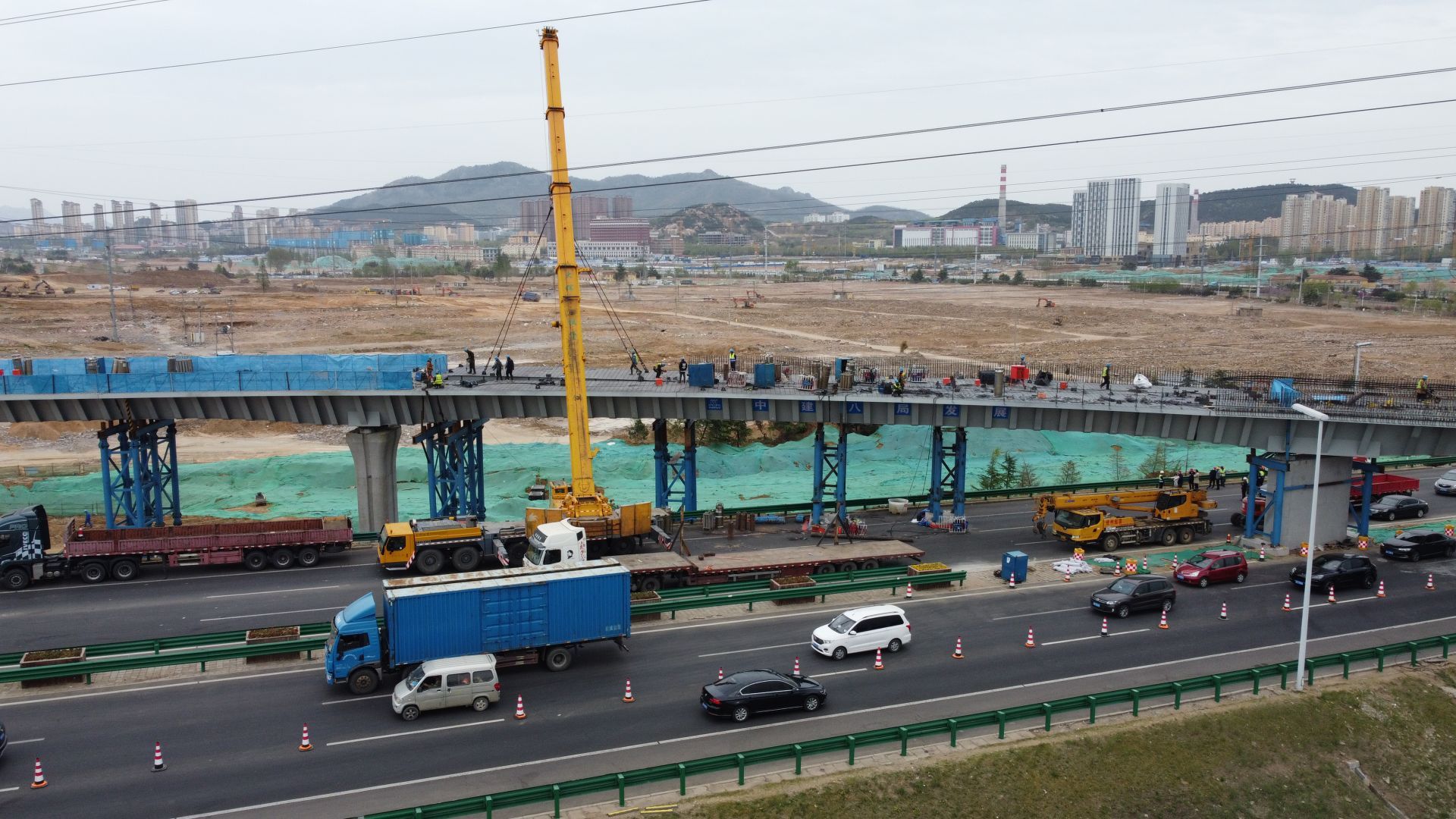 4月22日,在中建八局建设者的努力下,跨海大桥高架路二期工程二标段跨青银高速段最后一片箱梁顺利安装就位,标志着工程所有钢箱梁工程全部完成,工程全面转入桥梁附属工程施工阶段,距离全线通车迈进了重要一步。