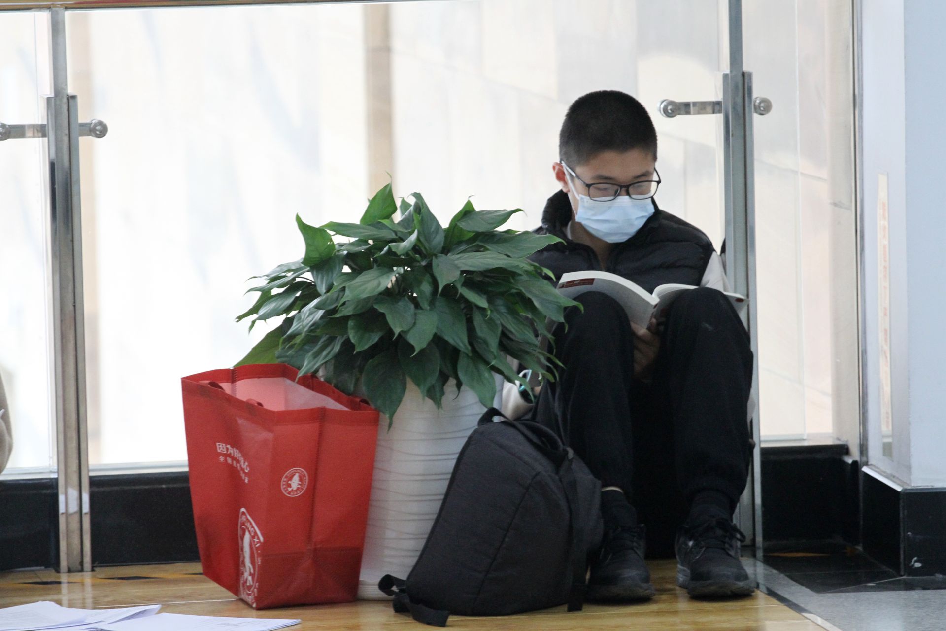 席地而坐的阅读者。
