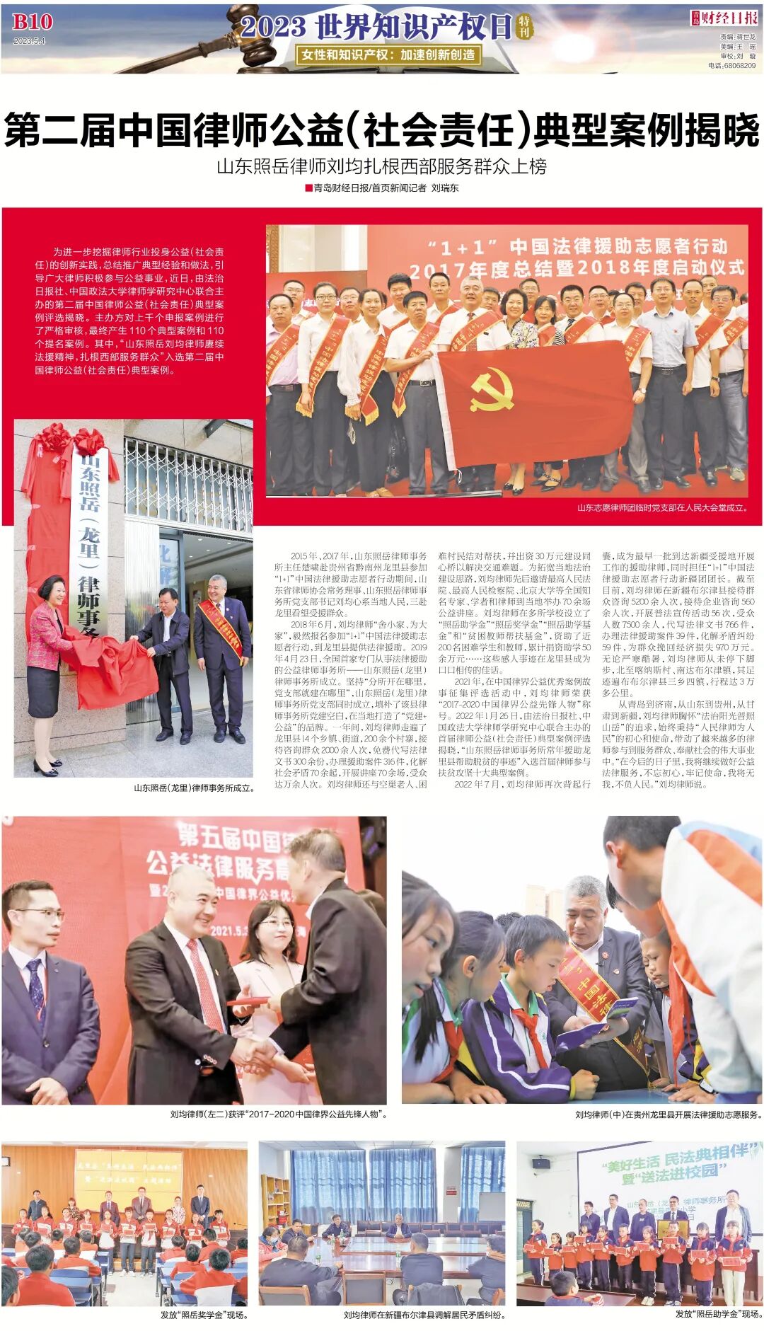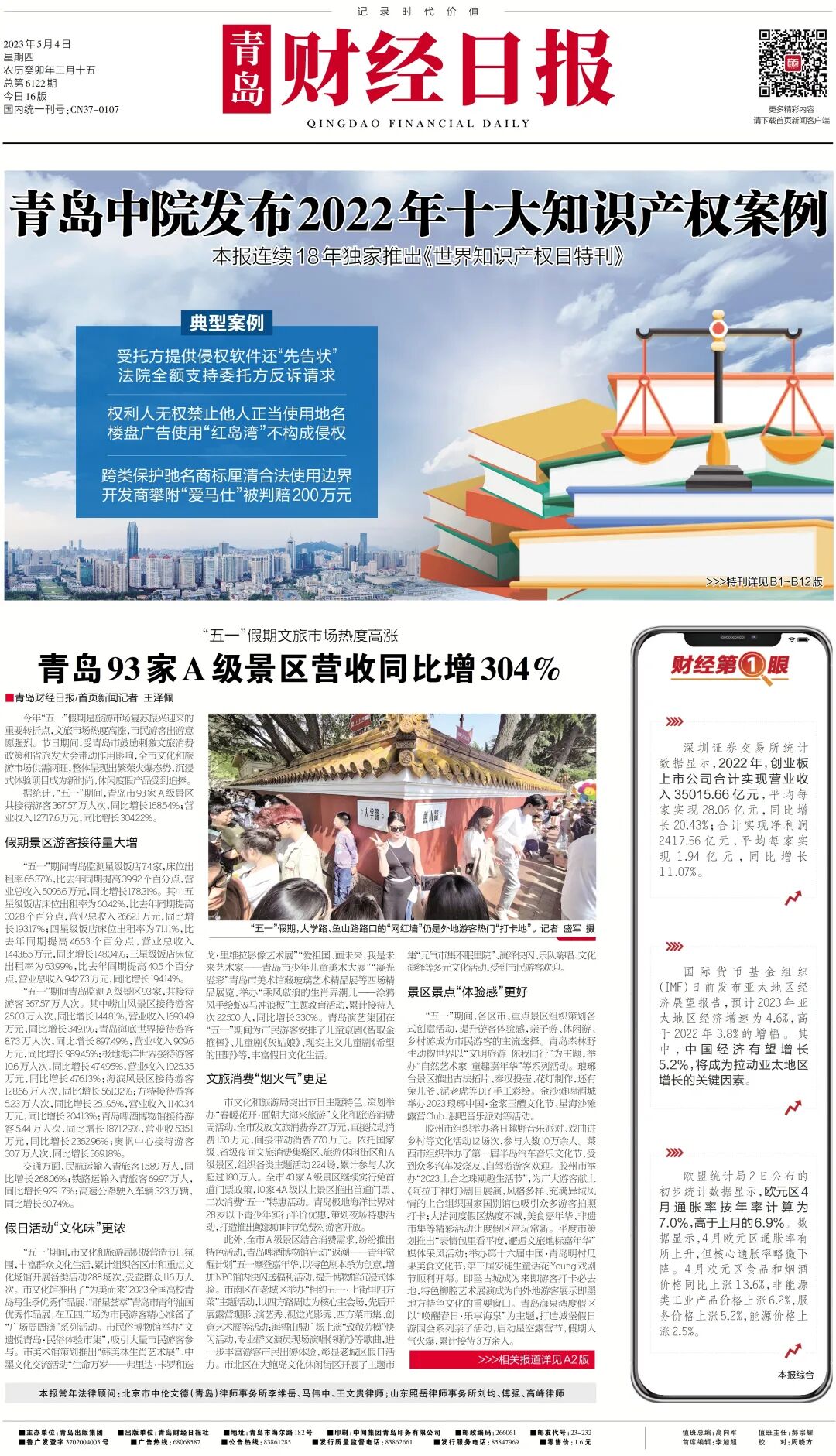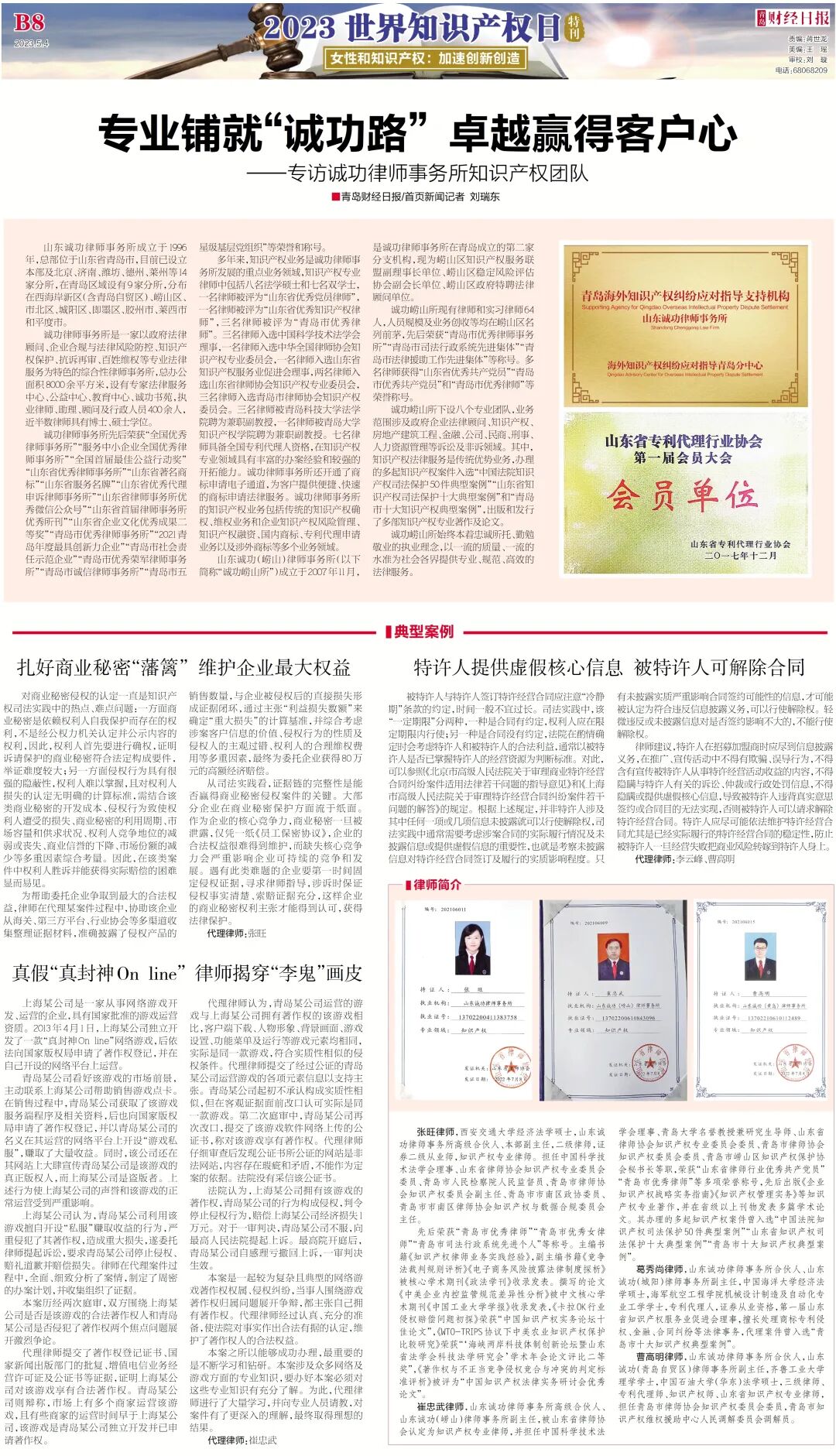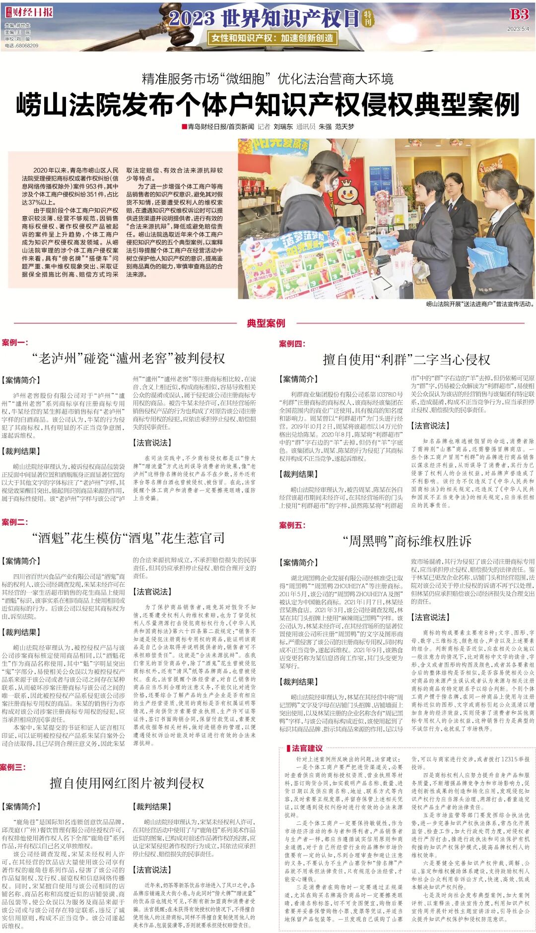 据悉,《青岛财经日报》与青岛市中级人民法院、青岛知识产权法庭自2006年起已连续18年在每年的4月26日前后推出《世界知识产权日特刊》,营造支持创新保护创造的良好社会氛围。