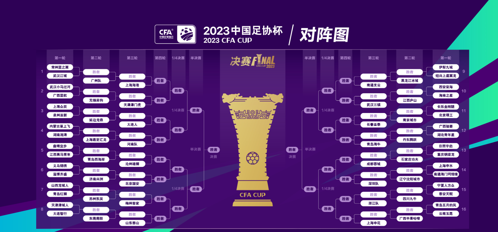 2023中国足协杯各参赛队对阵图。中国足协供图