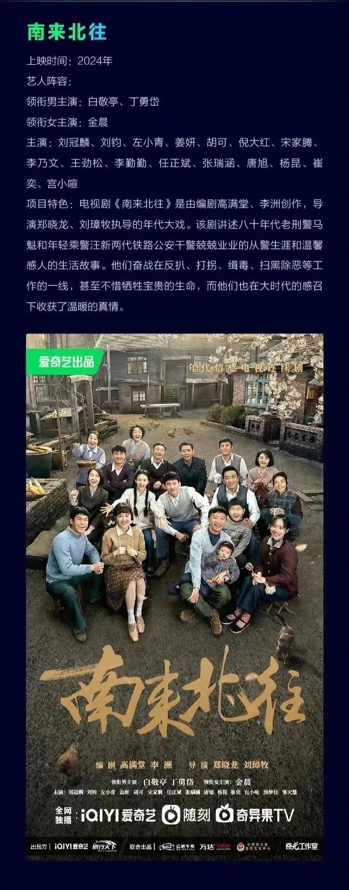 在这些剧目中,记者发现“青岛造”的接地气风格非常鲜明,如年代刑侦题材剧《南来北往》由青岛西海岸新区影视企业——青岛剧行天下影视制作有限公司参与出品,青岛东方影都影业公司联合摄制,郑晓龙、高满堂倾力打造,白敬亭、金晨、丁勇岱领衔主演。该剧在青岛东方影都置景拍摄,于今年4月19日正式杀青,预计2024年播出。