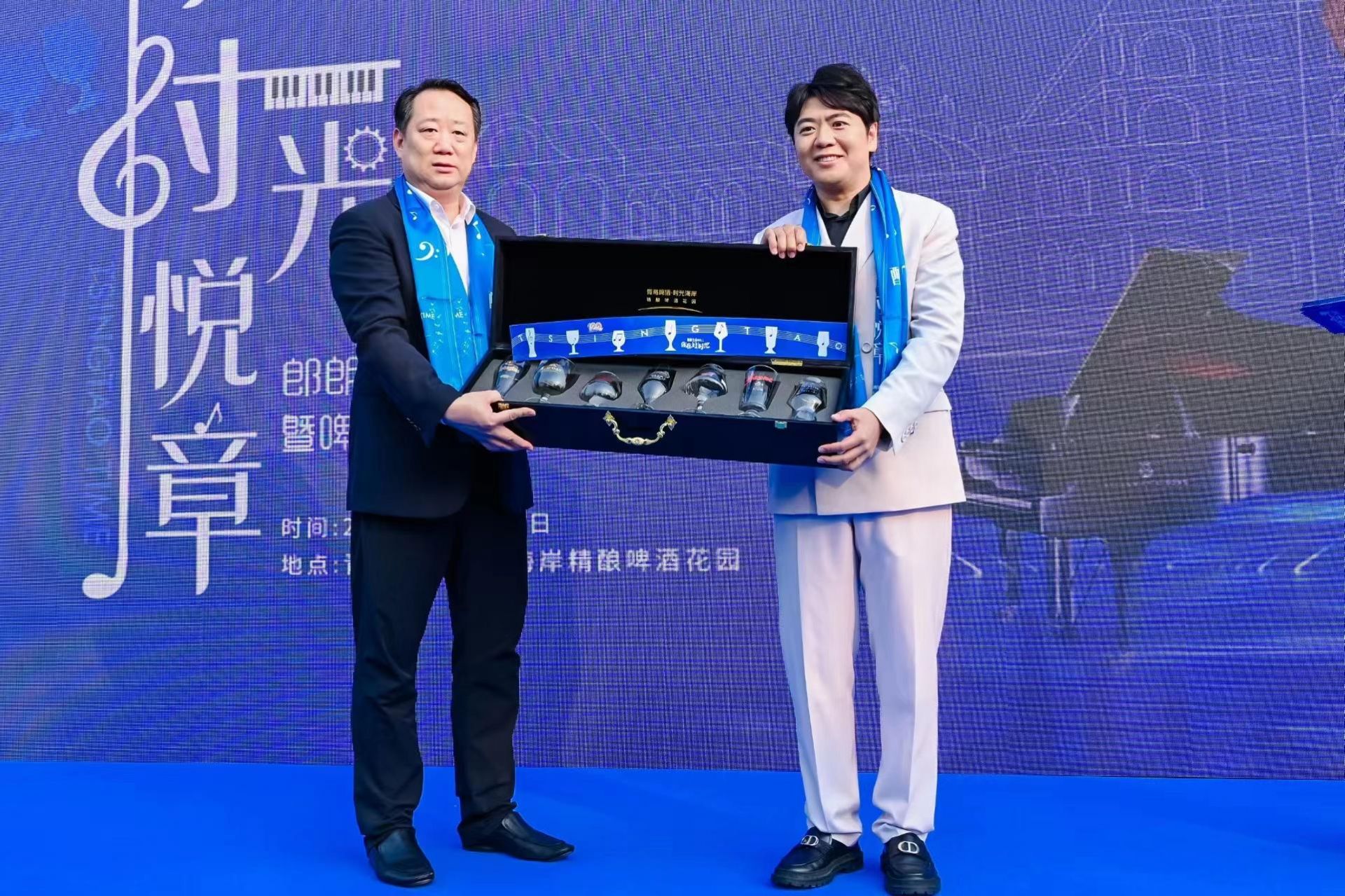 郎朗获赠钢琴酒杯套装 青岛啤酒时光海岸精酿啤酒花园供图