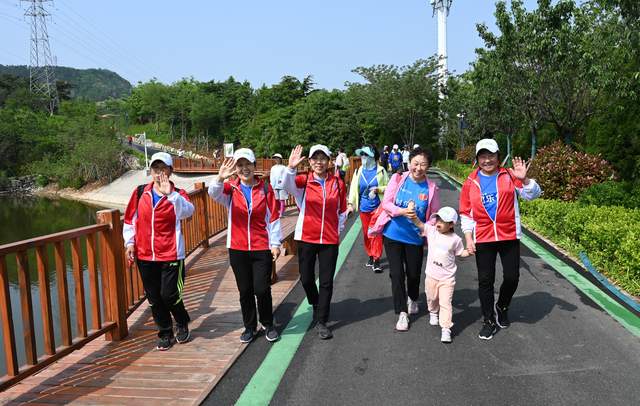 健步行会场设置在浮山森林公园,以“阳光草坪”为起点,以“曲径林”为终点,全程5公里。步道沿浮山蜿蜒起伏,两侧树木葱郁,鲜花遍地盛放,参赛者们在美景中挥洒汗水,感受“推窗见绿、出门入园”的城市美好,享受健步向前的恣意快乐。