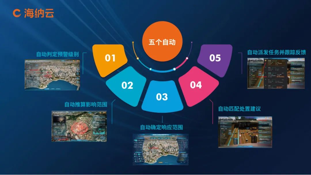 以上成功的燃气监测预警事件只是青岛城市安全监测预警项目的冰山一角。在海纳云技术与方案双引领的赋能下,此体系可赋能青岛实现城市安全应急“五个自动”智慧化效果,即以自动判定预警级别、自动推算影响范围、自动给出响应范围、自动匹配处置建议、自动派发任务并跟踪反馈,可有效破解当前城市安全工作中事后被动处置、应急指挥处置精细化差、无法实现多主体部门的横向+纵向并联,最终实现城市安全监测预警“一张图”、应急指挥“一盘棋”、应急管理“一张屏”。