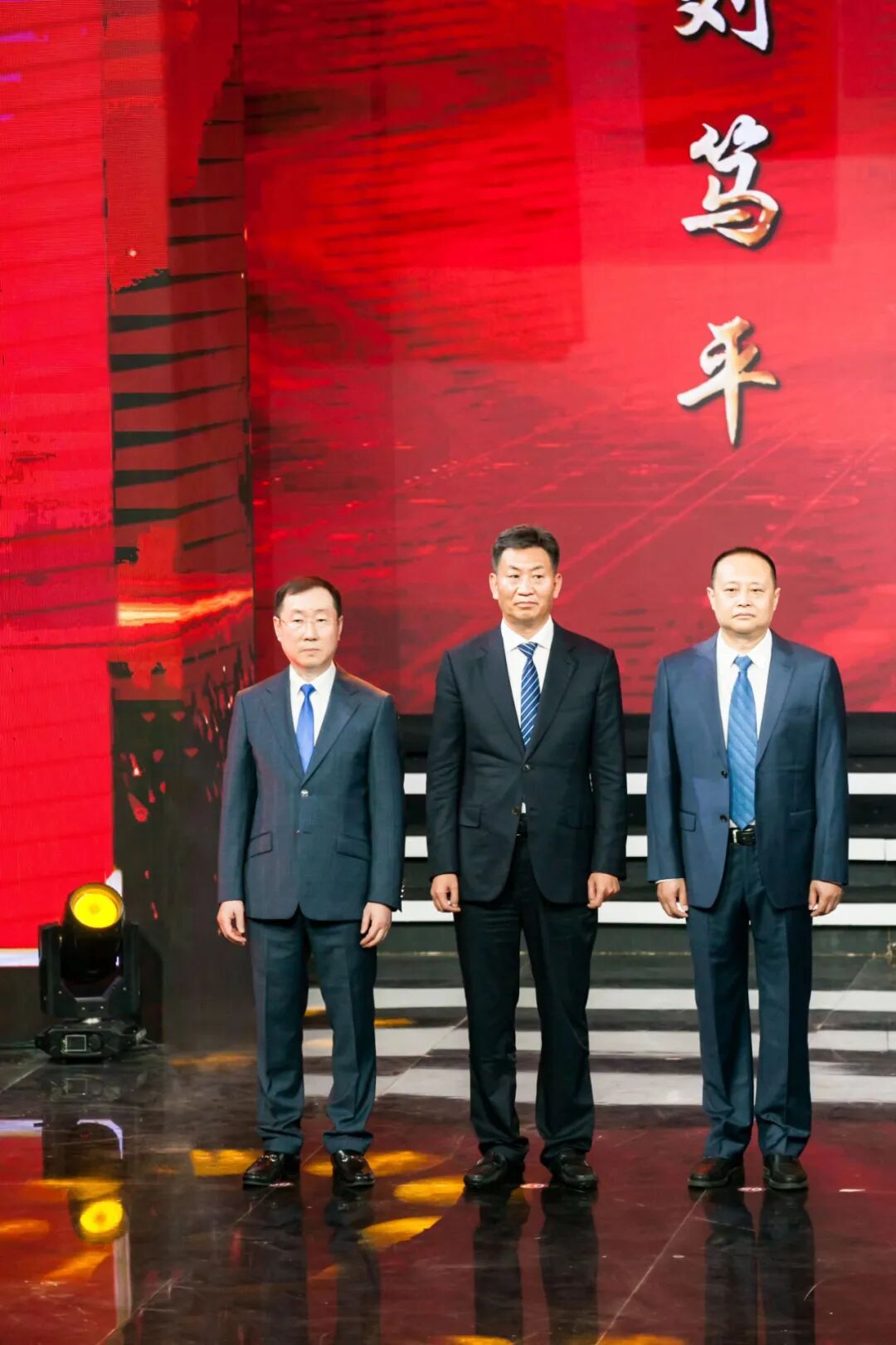 市委副书记、市长赵豪志(中)为新华锦集团副董事长、总裁刘笃平(左一)颁授荣誉