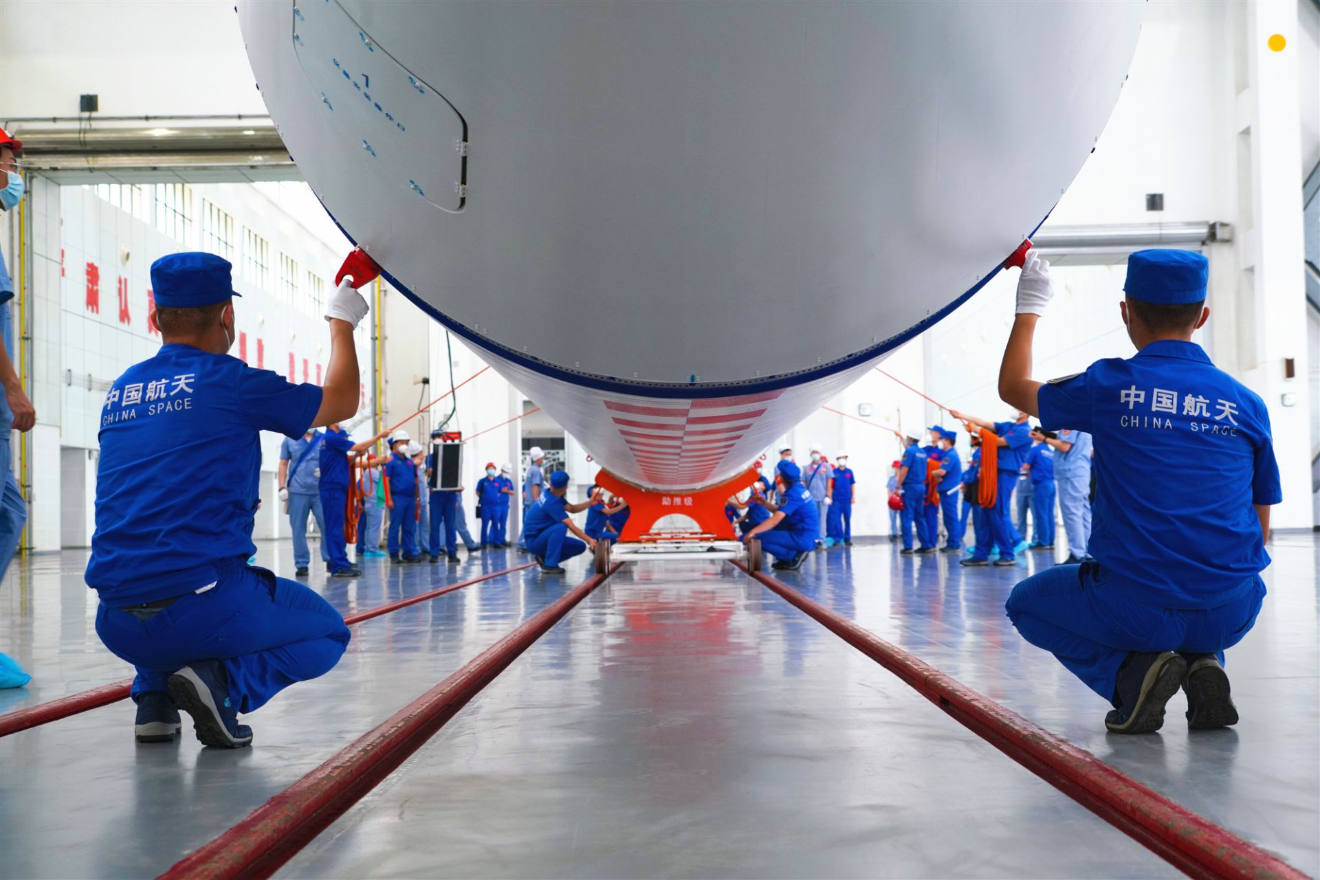 这是新型火箭长征五号B的第二次发射,升空的又是空间站的首个核心舱体,任务特殊、重大意义,为执行此次任务的航天工作者带来巨大压力。那段时间,办公室和机房常常灯火通明,发射场科技人员承压奋战、连续奋战、坚守奋战,但没有人叫苦叫累,大家都怀着一个共同信念——一定要让中国空间站早日建成!