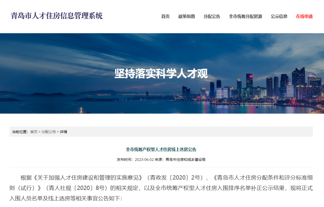 本次人才住房配售采取线上“公证云选房”方式,选房人通过支付宝账号进入青岛市市中公证处的“青岛公证云选房”小程序参与选房。