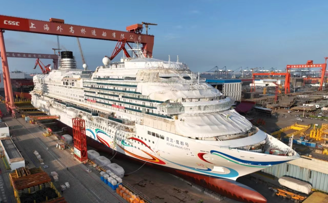 国产大型邮轮“爱达·魔都”号 图源:央视新闻