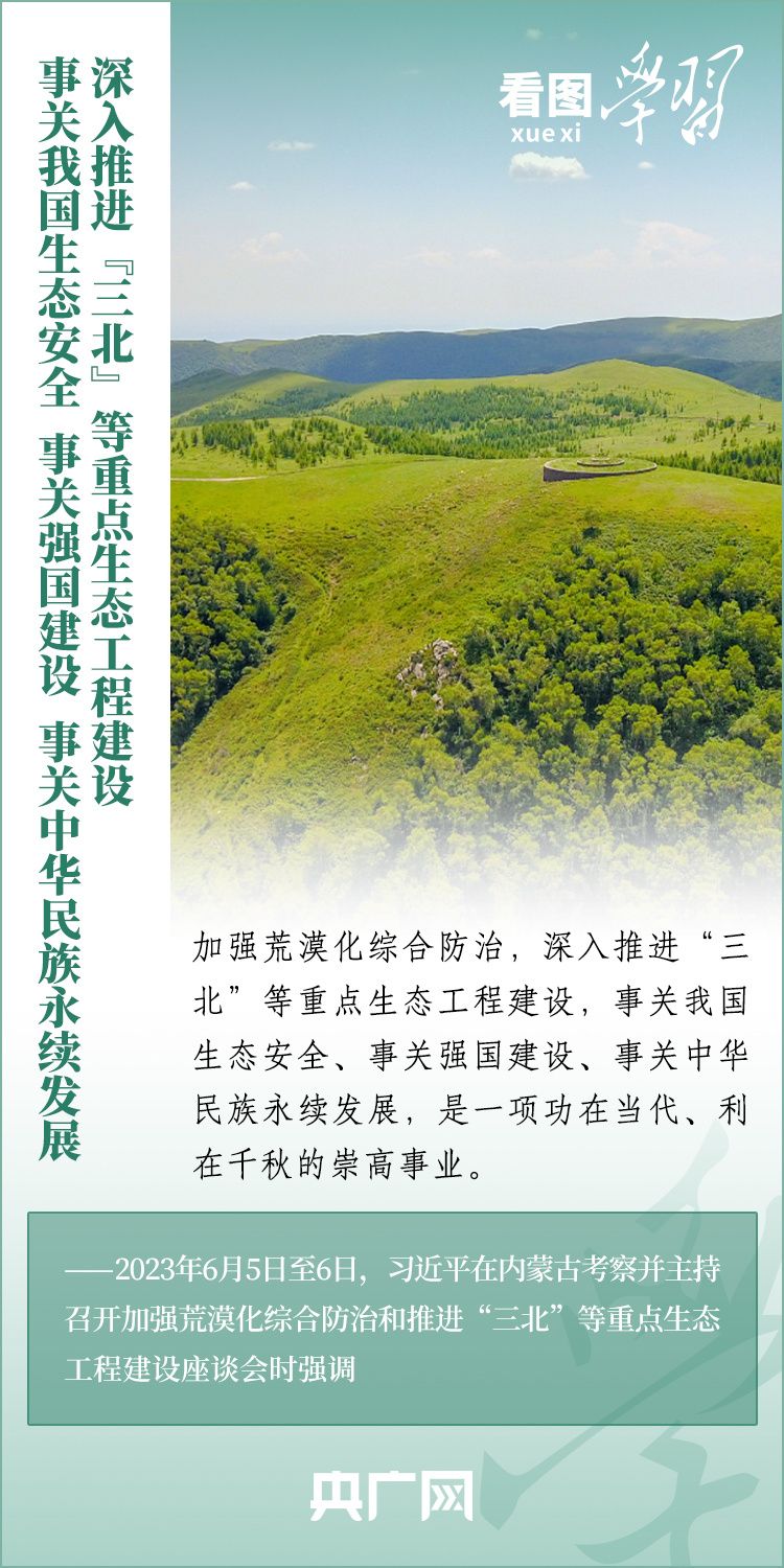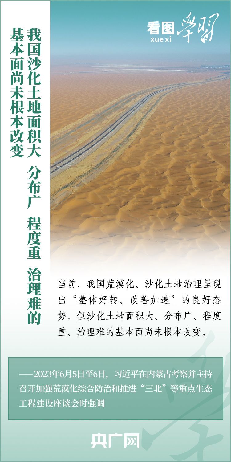 6月5日至6日,习近平总书记来到内蒙古自治区巴彦淖尔市,深入自然保护区、现代农业示范园区、林场、水利部门等考察调研,主持召开加强荒漠化综合防治和推进“三北”等重点生态工程建设座谈会并发表重要讲话。总书记强调,要勇担使命、不畏艰辛、久久为功,努力创造新时代中国防沙治沙新奇迹,把祖国北疆这道万里绿色屏障构筑得更加牢固,在建设美丽中国上取得更大成就。一起来学习!