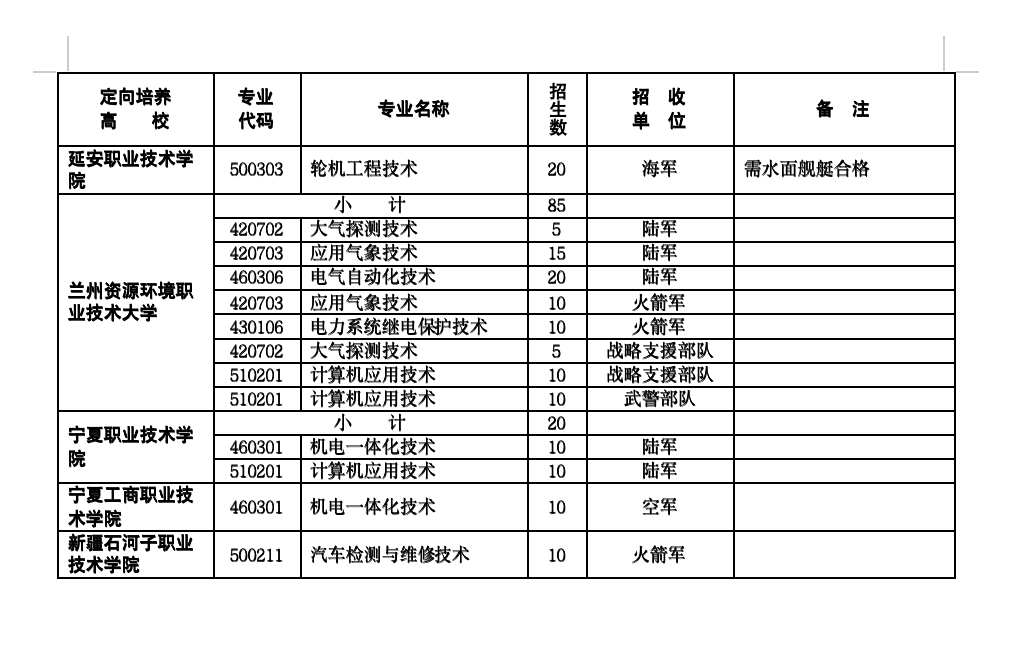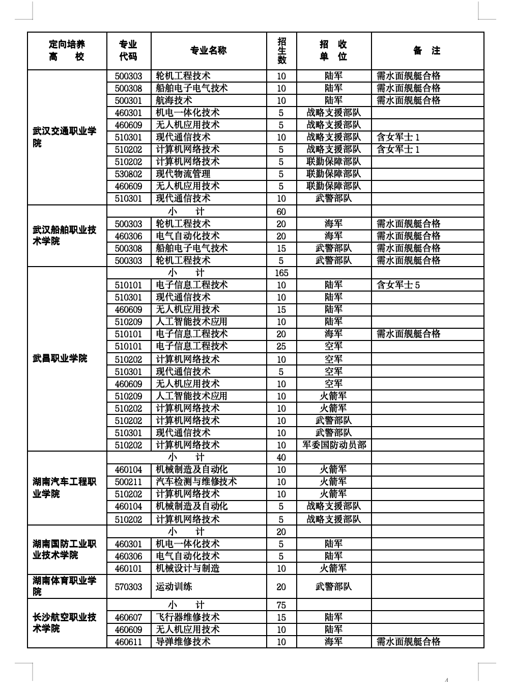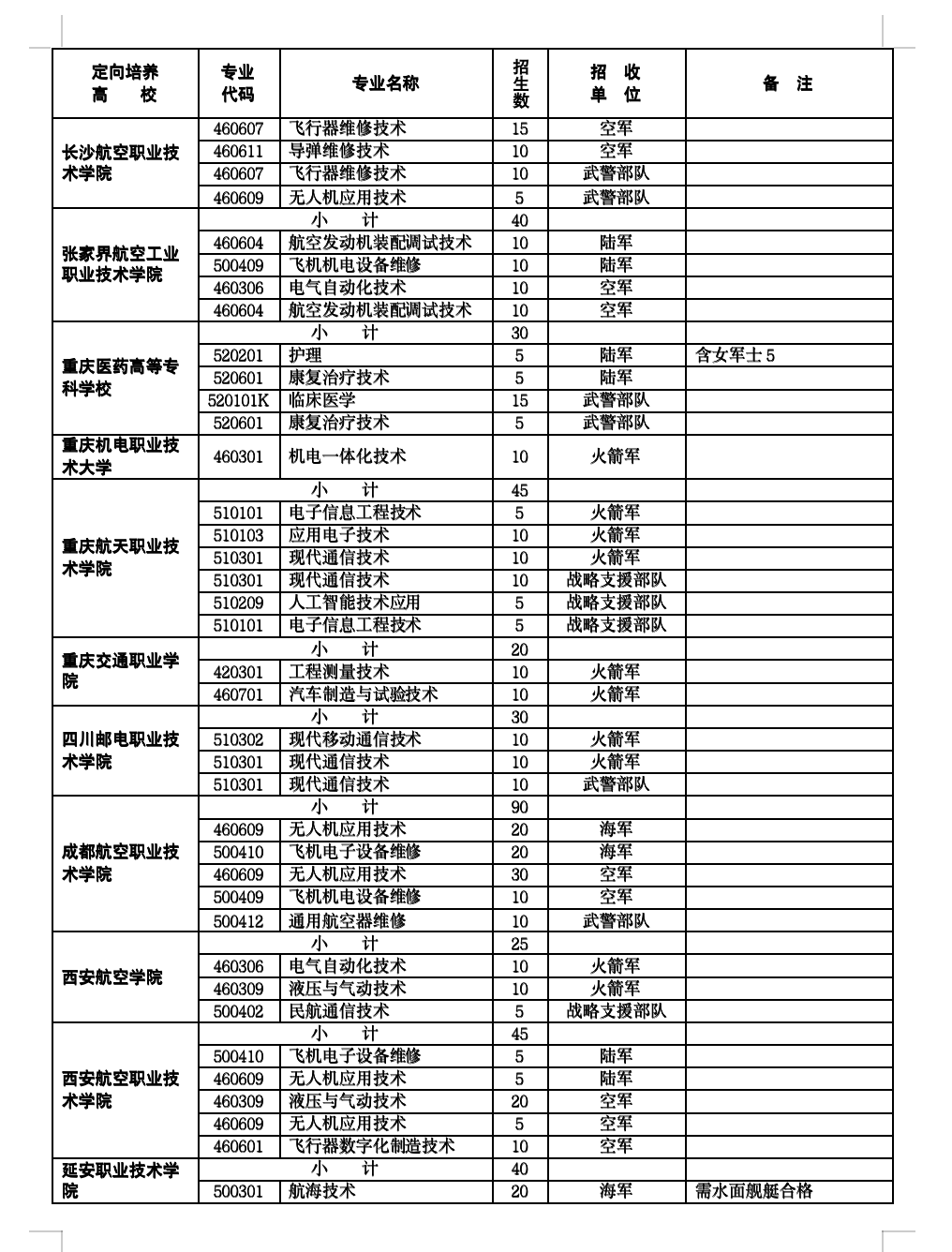 报考定向培养军士的考生须2023年在我省参加普通高等学校招生全国统一考试,文化课统考成绩不低于240分,志愿至少服现役满5年。