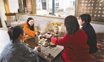 随着商家茶品制作技艺的创新,“花式饮茶”新方式层出不穷,受到不少消费者的欢迎。图为在安徽省黄山市屯溪区的一处茶室内,一些年轻人在相聚品茶。新华社记者 杜宇 摄