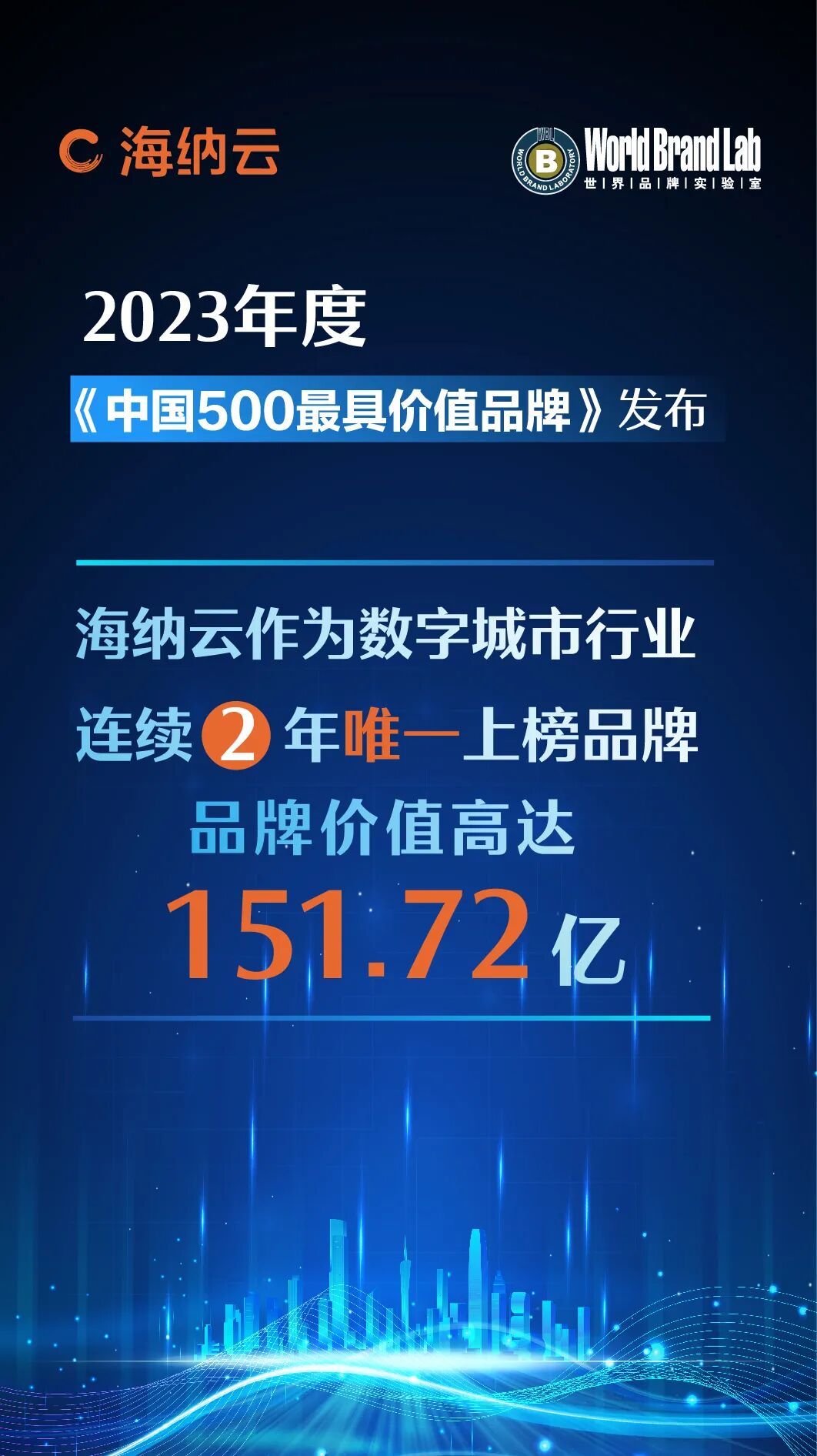 6月15日,由世界品牌实验室主办的2023年(第20届)"世界品牌大会暨中国500最具价值品牌发布会"在北京举行。会议重磅发布2023年度“中国500最具价值品牌”榜单。海纳云以151.72亿的品牌价值,作为“数字城市行业”唯一品牌上榜。